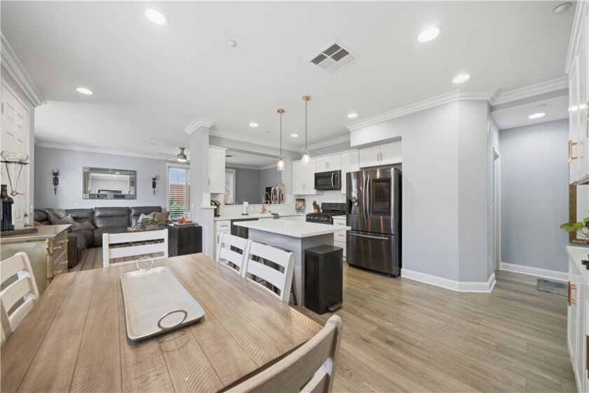 Beautiful move-in ready 3-bedroom, 2.5-bath townhome with an entertainers kitchen, private side yard, and convenient to freeways for commuting. This stunning home has been remodeled with a bright, open floor plan that makes it perfect for entertaining. Beautiful upgrades throughout create a true model-home feel, including custom kitchen cabinetry, a center island with bar seating, quartz countertops, luxury waterproof laminate wood flooring, plantation shutters, crown molding, and oversized baseboards. Upstairs, you’ll find a spacious primary suite with a large closet, along with two additional bedrooms and a full secondary bathroom. The convenient upstairs laundry room includes the washer and dryer. Step outside to your private back patio, complete with its own access gate, ideal for relaxing or hosting weekend barbecues. Additional features include an attached two-car garage and access to resort-style community amenities such as beautifully maintained grounds, a large gated pool and spa, barbecue area, and playground. Ideally located near Murrieta’s award-winning schools, shopping, dining, and Temecula wine country, with easy access to the 215 and 15 freeways for commuters.