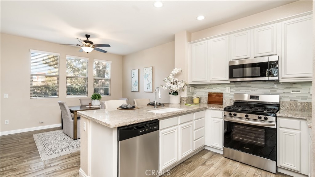 Located in one of Murrieta’s most sought-after neighborhoods, this beautifully updated home offers both comfort and convenience. With quick access to the 15 and 215 freeways, commuting is effortless. The home has just been refreshed with brand-new flooring, newly painted cabinets in the kitchen and bathrooms, sleek quartz countertops in the kitchen, and new stainless steel appliances, creating a bright, modern space ideal for everyday living and entertaining. Unlike interior units, this home enjoys a prime corner location near the shopping center, offering a more open setting. From the upstairs, you’ll appreciate pleasant views overlooking the high school across the street, rather than being surrounded by neighboring condos. Set within a welcoming, family-oriented community, residents enjoy access to a community pool, park, and recreational amenities. Shopping, dining, and entertainment are just minutes away, including Costco and nearby shopping centers. This move-in-ready home is an exceptional value and won’t last long.