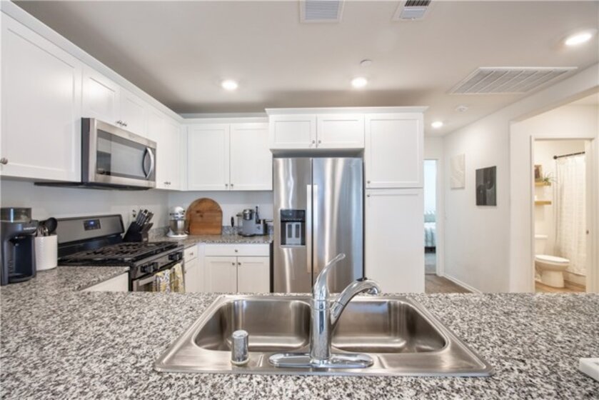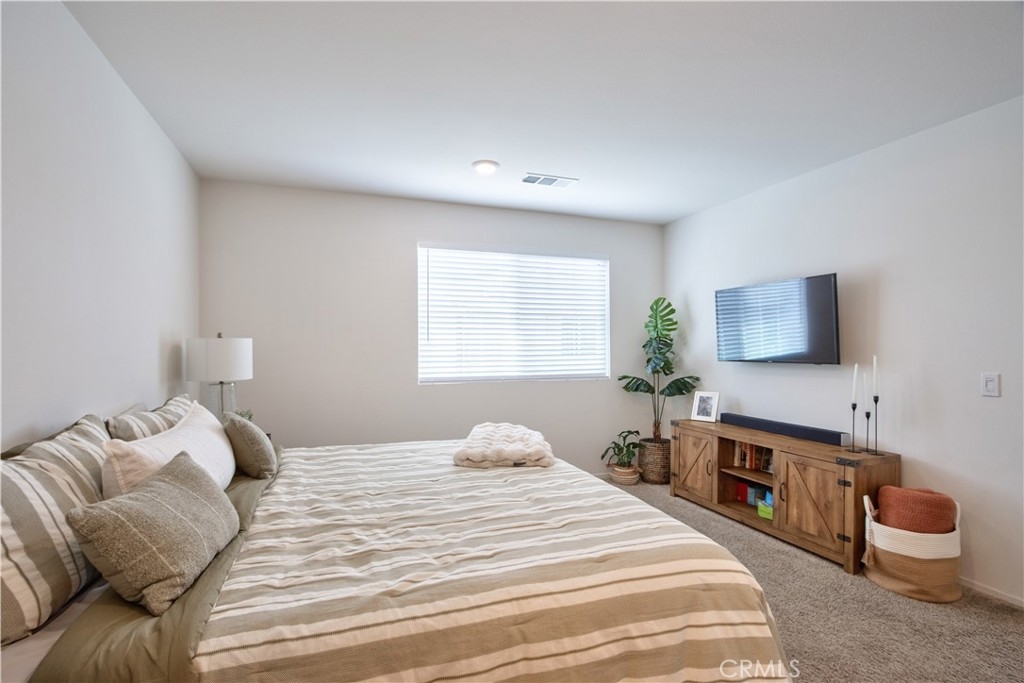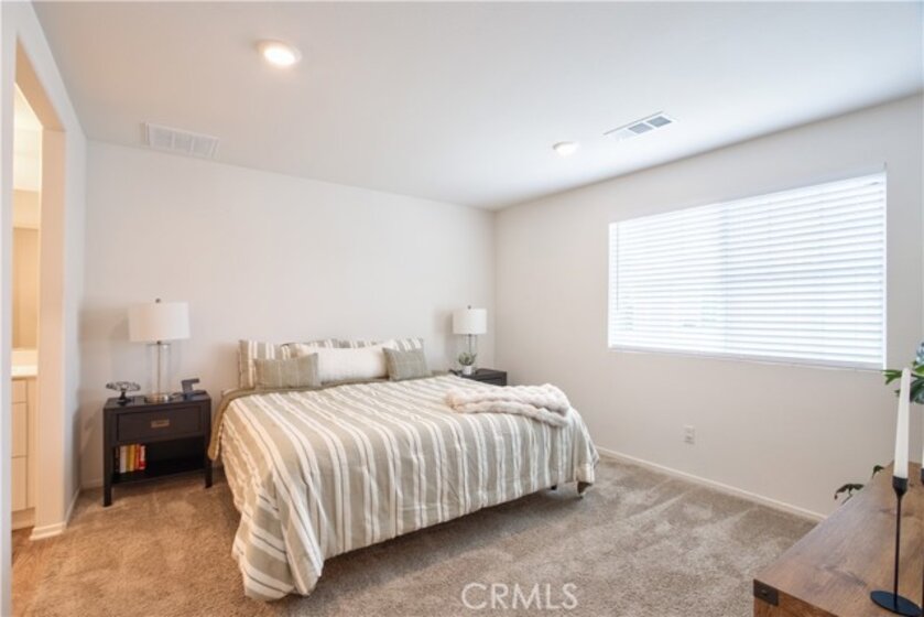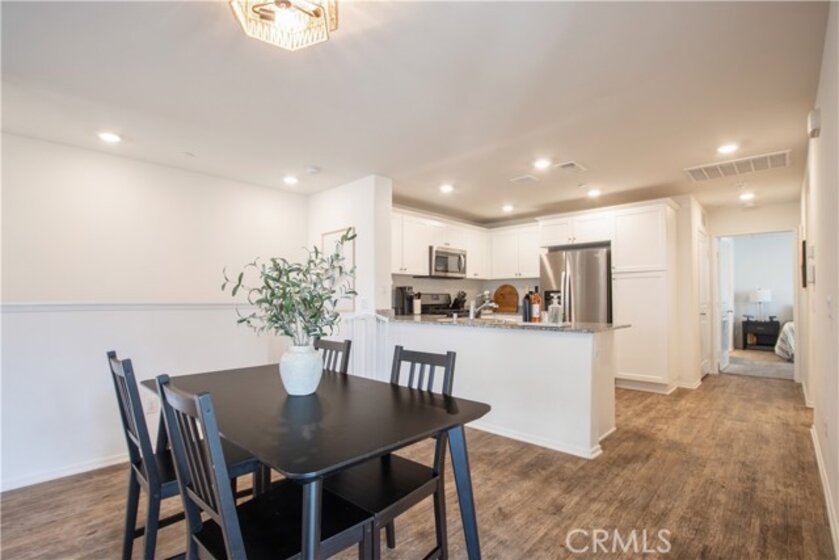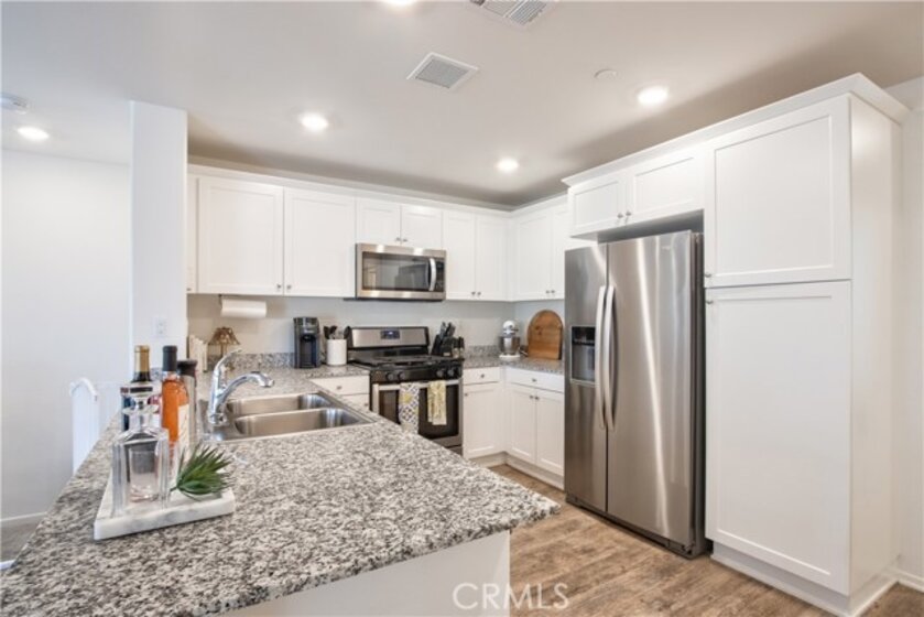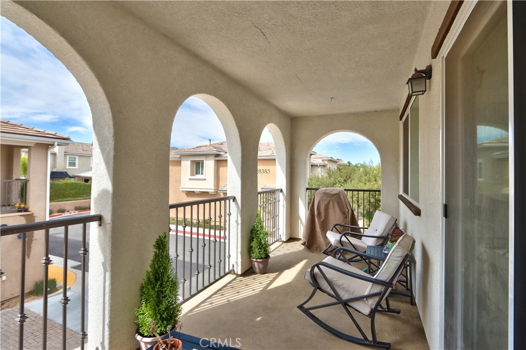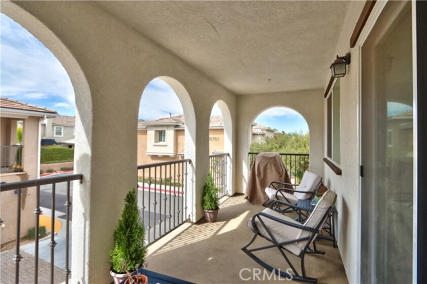 Welcome to this modern 2-bedroom, 2-bath condo offering 1,129 sq ft of living space, built in 2021 and located in the desirable Meadowlark Pointe community in Murrieta. Home Features All bedrooms upstairs with spacious layout Open-concept kitchen and living area perfect for entertaining Granite countertops and stainless steel appliances Shaker-style cabinets and modern finishes Custom paint throughout laminate wood flooring in living areas and carpet in bedrooms Spacious primary suite with en-suite bathroom and dual vanities Second bedroom ideal for guests, home office, or personal retreat Large covered balcony perfect for morning coffee or relaxing evenings Private two-car garage with additional storage space Energy-efficient solar lease panels with low monthly payments Tankless water heater for endless hot water Conveniently located minutes from restaurants, shopping centers, and everyday amenities. Close to the 215 Freeway, the new Costco shopping center, and Loma Linda Medical Center. Walking distance to schools, making this a great location for families. virtual tour https://tours.tvvirtualtours.com/idx/311722