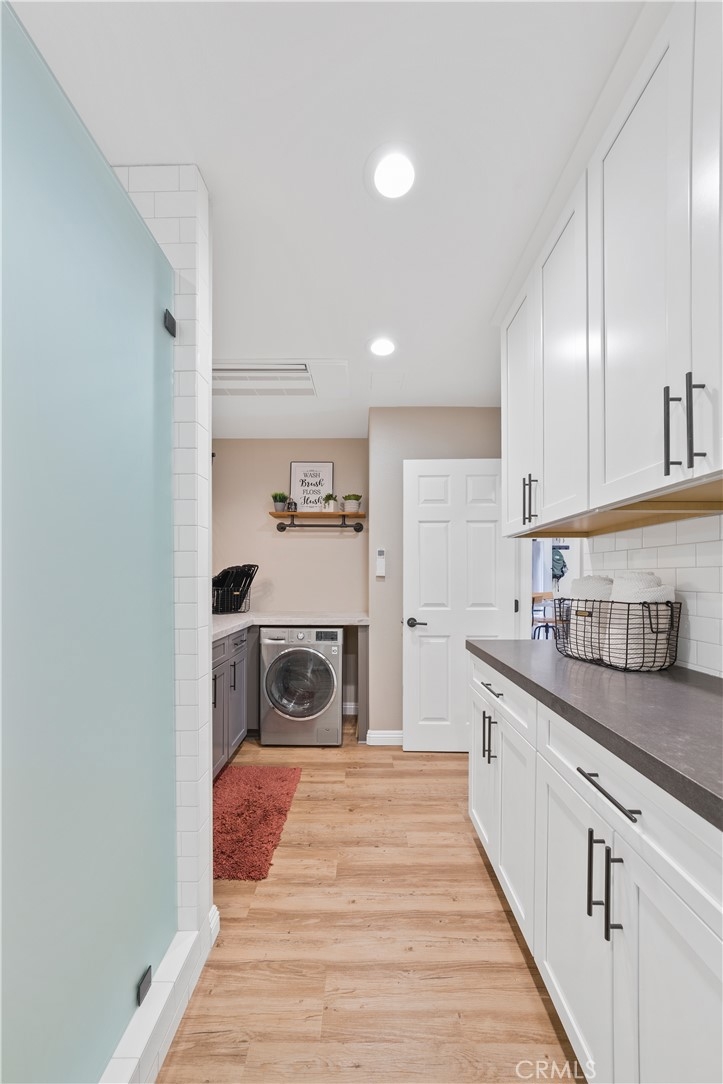 Do NOT miss this stunning condo right in the heart of Murrieta. It has been meticulously remodeled from head to toe with improvements unique to this unit that others do not have in the community. The open concept of the kitchen and living room is perfect for entertaining. The full chef's kitchen boasts marble and quartz counter tops, stainless steel apron sink, custom shelving, soft close cabinetry, extra pantry storage and stainless steel appliances. Throughout the home you'll enjoy neutral paint and quality laminate wood flooring, LED canned lighting and custom shelving. The spacious bedroom boasts a walk in closet with built in storage/organization and an additional slider to the private back patio. The bathroom offers a large walk in shower with floor to ceiling tile work, modern fixtures and frosted glass doors as well as plenty of linen storage, counter space and a laundry area unique to this unit. Check out the Euro style combination washer/dryer! Walking distance to shops and other amenities and just a few short minutes driving distance from grocery stores, the mall and both the 15 and 215 freeways, the location is unbeatable. There really is just too much to say about this pretty home - you'll have to come check it out yourself!