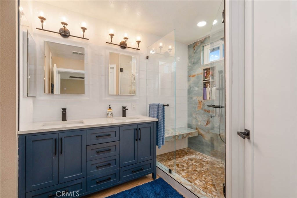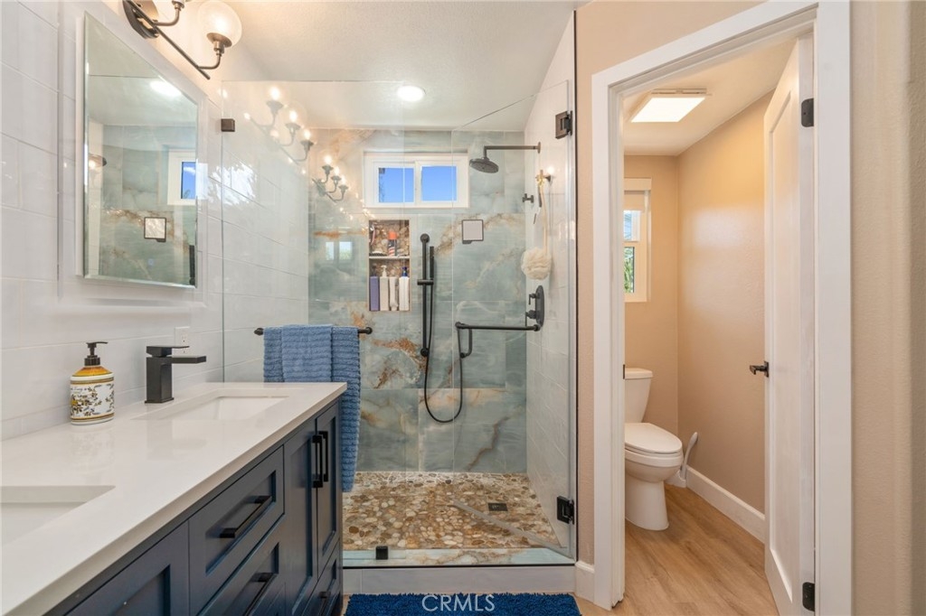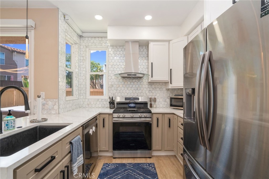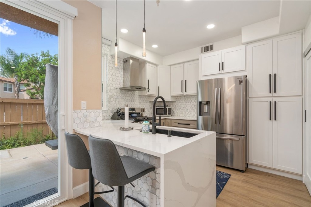 This beautiful 2 story condo is located in the desirable Montego Bay Community. This home has been FULLY REHABBED from top to bottom! There is something that catches your eye on every corner! This property boasts an open and airy floor plan with 2 large bedrooms, NEW Waterproof LVP flooring throughout, stainless steel appliances, Quartz countertops in the kitchen, motorized roman shades, nest thermostat, new doors, fans, light fixtures, and vanities. It includes new kitchen cabinets with soft closing doors, dual pane windows to reduce noise, recessed lighting and many more upgrades! You have a beautiful back yard with an attached one-car garage, plus 2 extra parking spaces for your guests. The development is beautifully maintained and secured within a gated community that also includes a pool, kids' playground, and BBQ area. Just minutes from the 15 Fwy and numerous restaurants and shopping close by. This one won't last and is a must see!
