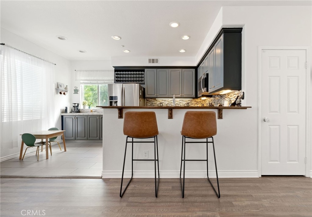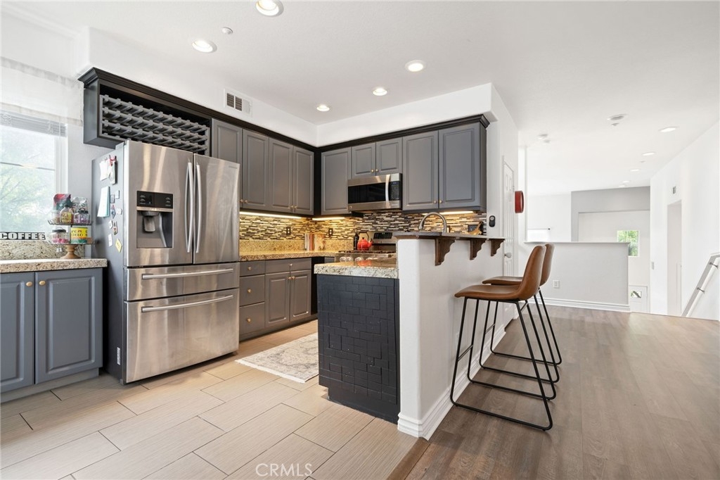 Welcome home to your new turnkey Murrieta END UNIT condo in the wonderful gated community of Willow Haven! Enter through your fenced front yard into the small courtyard. Once inside, you will instantly fall in love with the natural light in this bright and airy multi level condo with high ceilings. On the first level you will find your living space and coat closet. Venture up half a floor to the formal dining room and garage door access. Continue upwards to the next level where you will find the kitchen, pantry, fireplace and half bathroom. The kitchen boasts granite countertops, coffee nook, wine rack and stainless steel appliances. Continue to the top floor where you will find the primary bedroom complete with two closets including one walk-in, spa style bathroom with zen-like detailing, dual shower heads and dual sinks, two additional bedrooms, laundry room and second full bathroom with tub/shower combo. Upgrades include: lvp flooring and new carpet throughout, new paint, ceiling fans, nest thermostat and doorbell (included), blinds on top floor with black out feature and the 2 car garage in unit with additional storage crawl space as the cherry on top. Enjoy the community pool, park and sidewalks in this prime location close to shopping and freeway access. Close to hospitals and shopping, you're only minutes away from the up and coming Menifee shopping center or the newly opened Murrieta Costco, and a quick 10 minute drive to Temecula's Wine Country. You don't want to miss your chance! It won't last long!