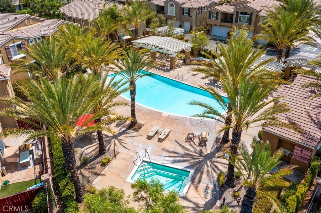 This beautiful turn-key property located in the North Oaks Community of Murrieta features 3 Bedrooms, 2.5 Baths, and a 2 car garage. The open floor plan includes several upgrades such as plantation shutters, stainless steel appliances, newly installed quartz countertops, custom backsplash farmhouse kitchen sink, white kitchen cabinets & luxury vinyl plank flooring throughout the home with custom baseboards. The private backyard is very low maintenance, great for entertaining with family and friends. All bedrooms and laundry rooms are located upstairs. Amenities include a large gated pool, spa, barbecue picnic area, and playground. Walking distance to shopping centers, restaurants, schools, and convenient access to the 215 Freeway.
