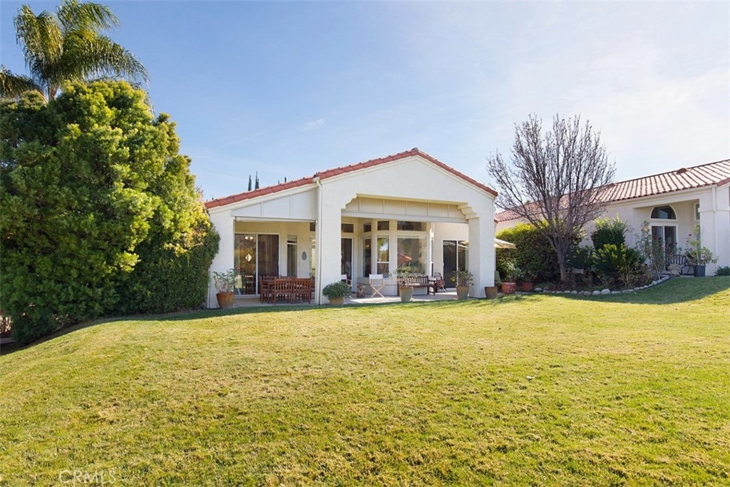 Rare Find !! Charming Fairway Estate home located 14th hole of Bear Creek Golf Course. Nearly 2500 sq ft on one level with no step downs at all. Courtyard entry looks like an English garden leading to leaded glass double doors. Upon entering home you won’t help but notice the expansive golf course views. Kitchen boast granite counters, peninsula with Jenn Air gas range and nook open to patio. Great room with fireplace and built in wet bar, great for entertaining. Master bedroom with 2nd fireplace, built in linen cabinet, double sink vanity, large walk in shower and separate walk in closet. Secondary bedroom with en-suite bath, walk with closet AND separate private patio and entry. 3rd bedroom currently used as office with built in double desks, cabinetry and shelving, perfect for in home office or personal use. Beautiful under roof patio expanding across the back of the home perfect for relaxing and taking in the breathtaking golf course and mountain view’s. Home features 2 car plus golf cart garage with direct access to home and separate laundry room. Run, don’t walk as this won’t last long.