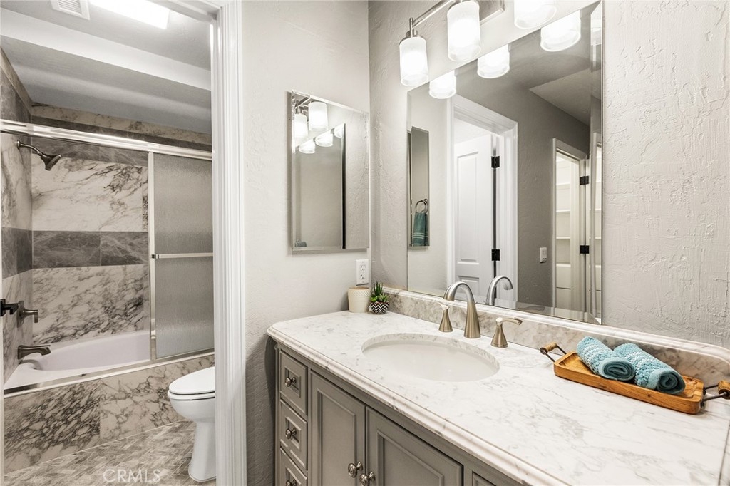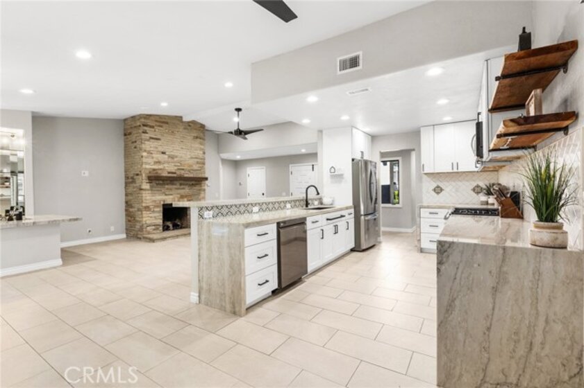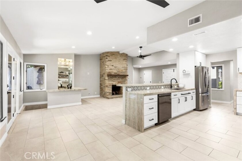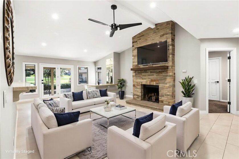 Gorgeous 2-bedroom, 2.5-bath single-story home perfectly positioned on the 17th fairway of the prestigious Jack Nicklaus golf course. This stunning residence has been beautifully remodeled throughout, offering the perfect blend of luxury, comfort, and seamless indoor-outdoor living. The kitchen has been completely transformed, with the wall between the kitchen and family room removed to create an open-concept great room ideal for entertaining. Highlights include exquisite quartz countertops with waterfall edging, updated cabinetry accented with gorgeous black hardware, high-end LG appliances, and modern LED lighting. The stylish wet bar has also been upgraded with beautiful quartz countertops, a sink, and a built-in beer keg — perfect for hosting gatherings. The open family room features a custom stone fireplace wall and breathtaking golf course views, creating a warm yet sophisticated focal point. Enjoy both an eat-at bar and a dedicated dining area for effortless entertaining. Both spacious primary suites offer private en-suite bathrooms, custom closet organizers, and custom doors leading directly to the backyard — providing seamless access to the tranquil fairway views. The main primary bathroom has been fully renovated with a large double vanity, custom mirrors, designer lighting, upgraded fixtures, and a stunning walk-in shower with gorgeous marble walls. The secondary en-suite bath also renovated and showcases a custom vanity, LED lighting, herringbone tile flooring, a tiled bath/shower combo, and elegant fixtures. The hall powder room is equally impressive with a custom vanity, updated lighting, gorgeous fixtures, and a striking decorative stone and tile accent wall. Custom Levolor window coverings throughout the home add both sophistication and functionality. Additional highlights include direct access to a 2-car garage with epoxy flooring and an abundant amount of cabinetry and overhead storage. Step outside to your private backyard oasis featuring an Alumawood covered patio, dedicated seating areas off each bedroom’s private access, a custom BBQ island complete with refrigerator, and breathtaking views of ancient oak trees and the lush fairway beyond. This is golf course living at its finest — remodeled, refined, and truly move-in ready.