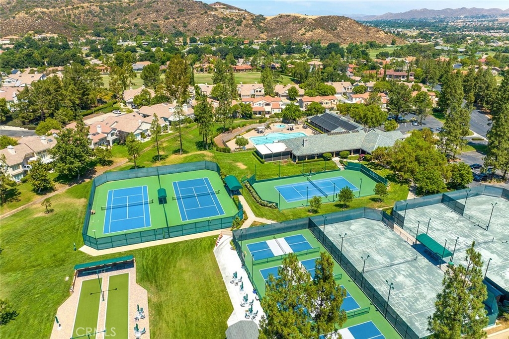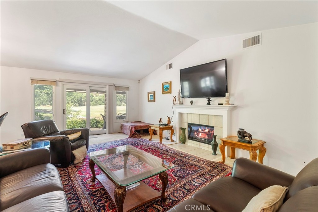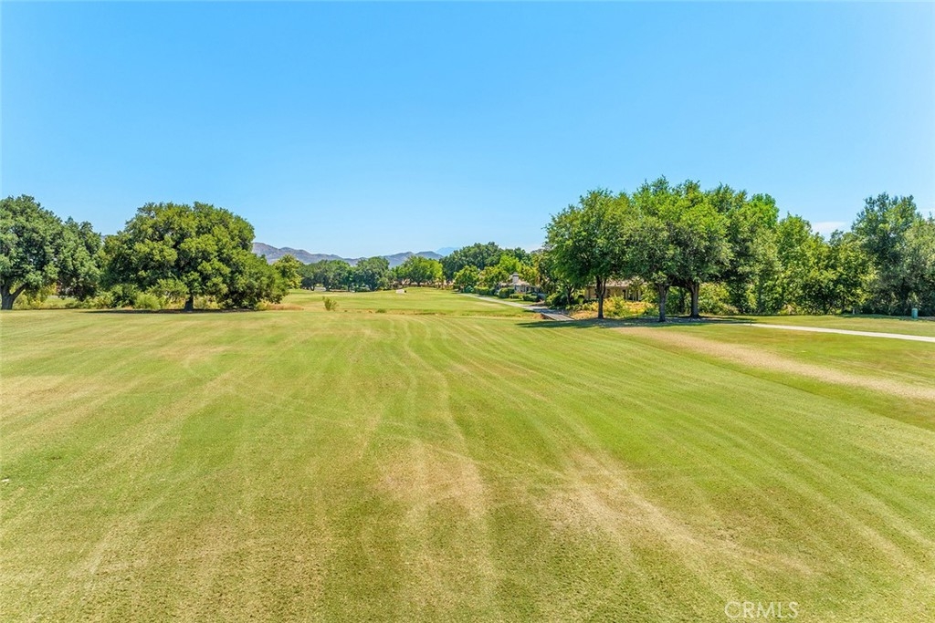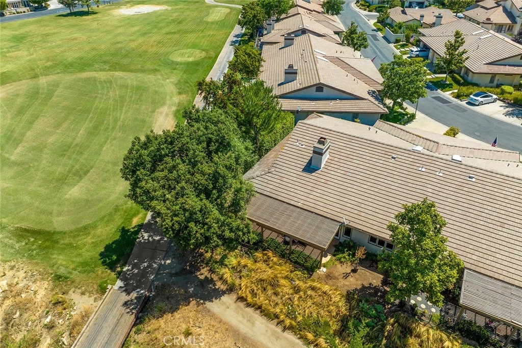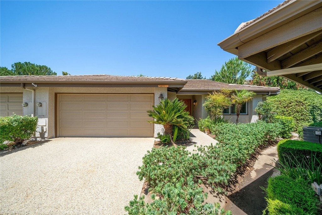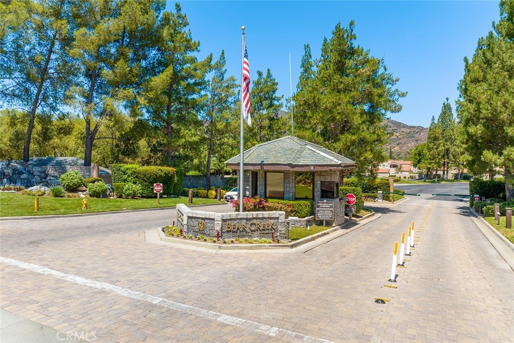 Enjoy resort syle living at its very best. Bear creek offers a first-class golf course, and a private guard gated 24-hour patrolled community. This home has a lot offer in terms of location and space. It is an end unit with no rear neighbors nestled amongst some ancient oak trees with a beautiful view of the golf course. Also, one of very few units that has a huge driveway for parking which is rare for Condos in the community. Gourmet Kitchen is equipped with stainless steel built-in Kitchenaid refrigerator that stays! Beautiful cabinetry, breakfast bar & large nook with skylight. Great room & formal dining have vaulted ceilings, a gas/wood fireplace and a rear door to the patio. This home has neutral colors and is turn-key. Spacious two car garage with built in garage cabinets. HOA is professionally managed, maintains landscaping, exterior painting (HOA just recently repainted complete exterior. Looks brand new!) and pays garbage. A ton of first-class amenities to include multiple pools/spas (One being walking distance from this home), tennis courts, bocce ball, fitness center & more! Bear Creek Golf Club has golf & social memberships available. Low taxes, no mello-roos!
