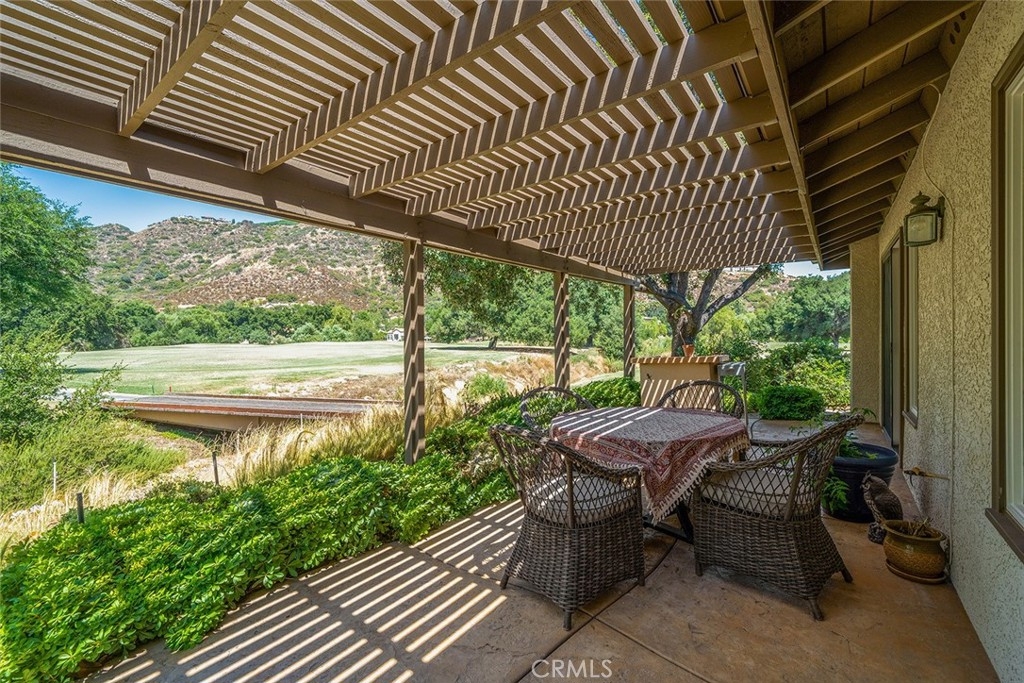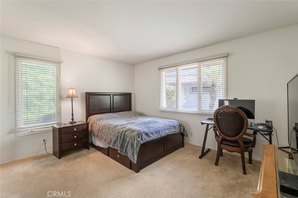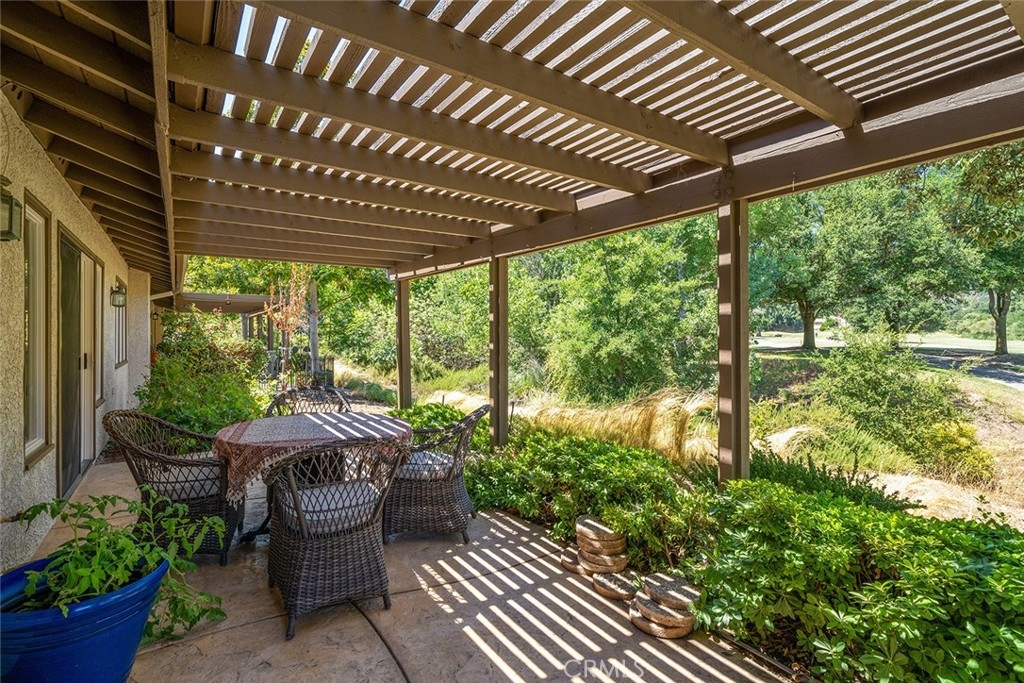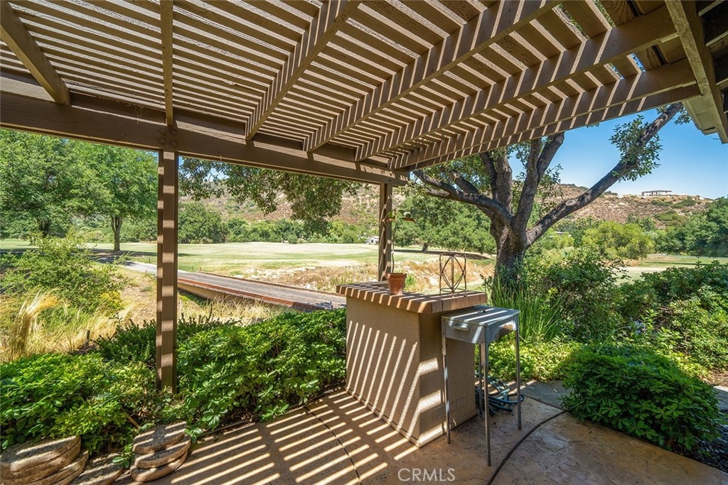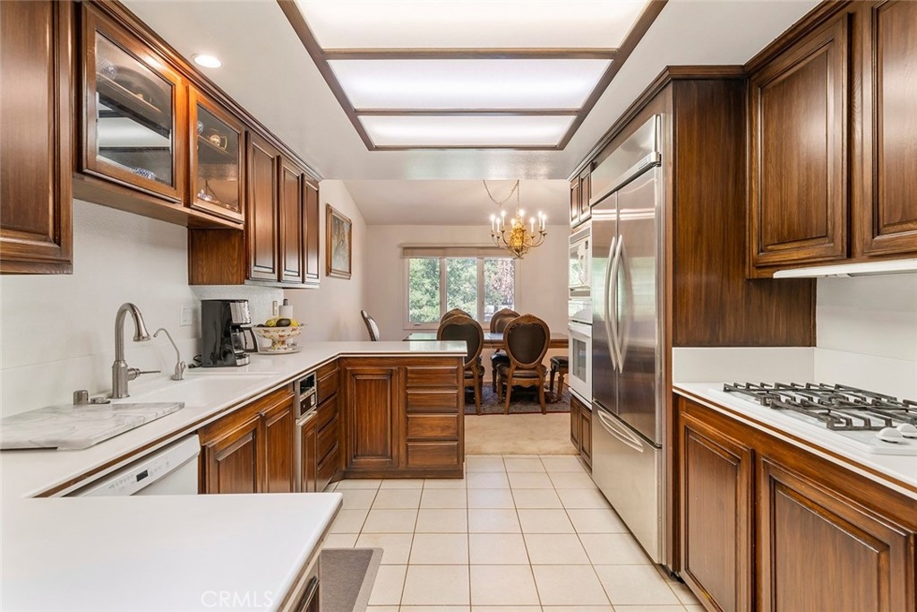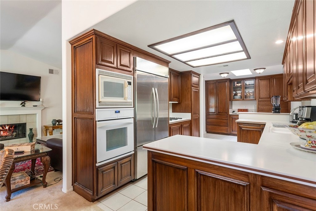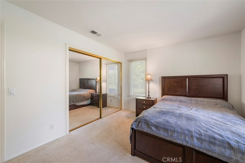 Enjoy resort syle living at its very best. Bear creek offers a first-class golf course, and a private guard gated 24-hour patrolled community. This home has a lot offer in terms of location and space. It is an end unit with no rear neighbors nestled amongst some ancient oak trees with a beautiful view of the golf course. Also, one of very few units that has a huge driveway for parking which is rare for Condos in the community. Gourmet Kitchen is equipped with stainless steel built-in Kitchenaid refrigerator that stays! Beautiful cabinetry, breakfast bar & large nook with skylight. Great room & formal dining have vaulted ceilings, a gas/wood fireplace and a rear door to the patio. This home has neutral colors and is turn-key. Spacious two car garage with built in garage cabinets. HOA is professionally managed, maintains landscaping, exterior painting (HOA just recently repainted complete exterior. Looks brand new!) and pays garbage. A ton of first-class amenities to include multiple pools/spas (One being walking distance from this home), tennis courts, bocce ball, fitness center & more! Bear Creek Golf Club has golf & social memberships available. Low taxes, no mello-roos!