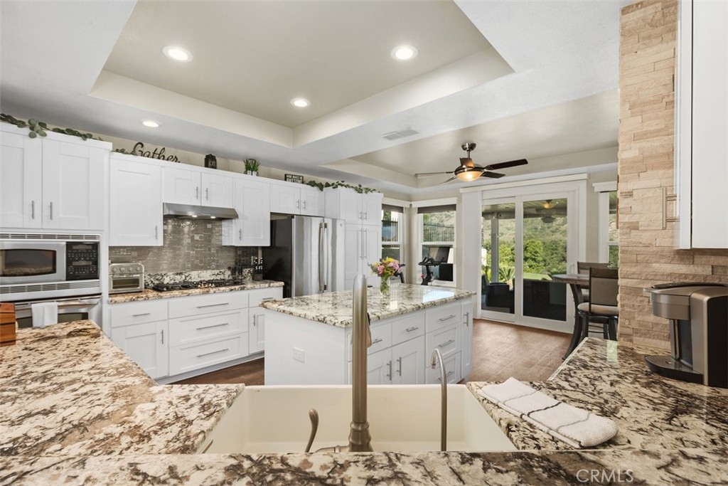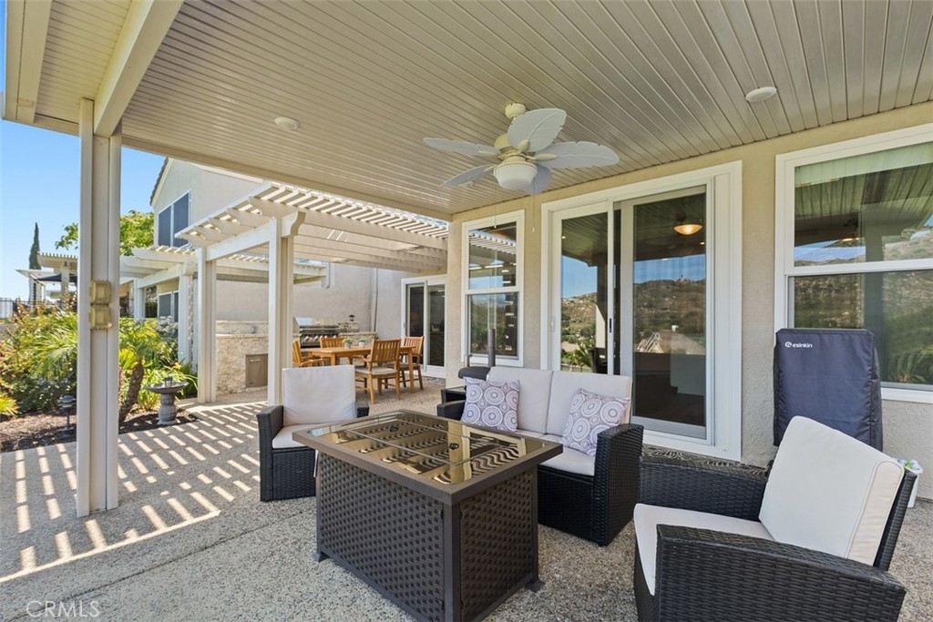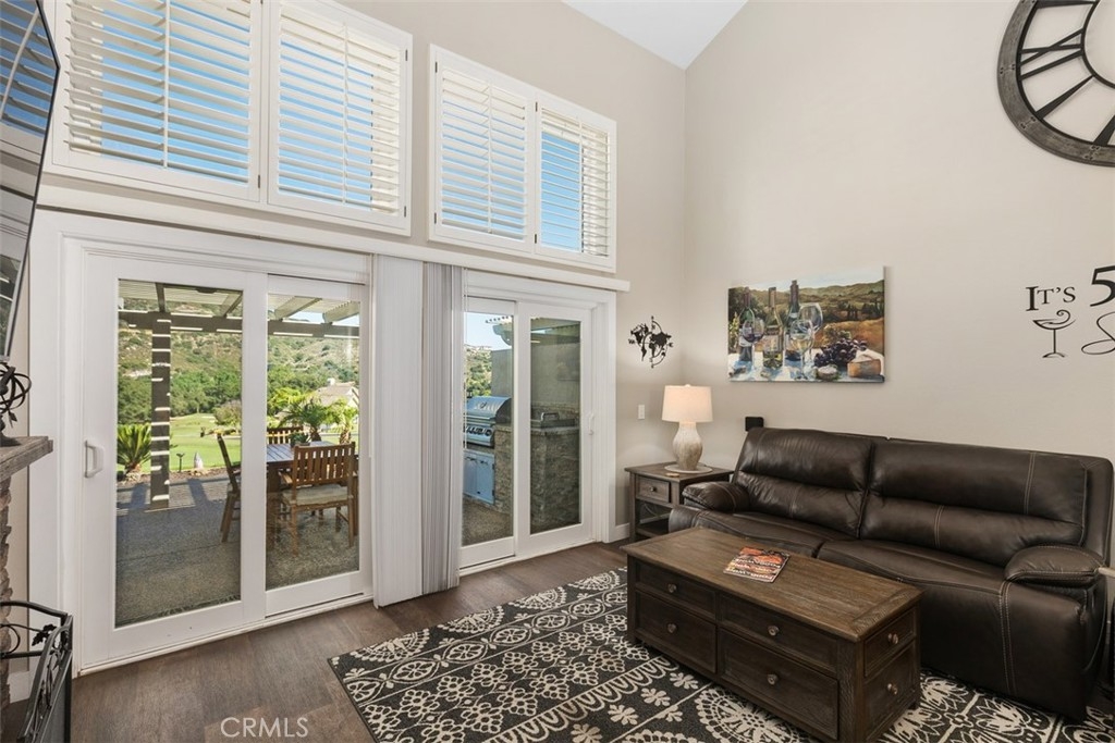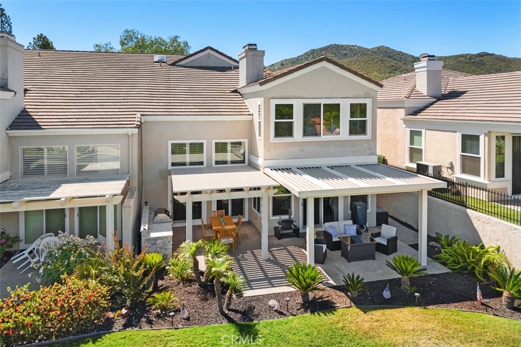 Located on the par 4, 15th green with stunning views of the 15th and 16th holes at Bear Creek. Remodeled 2 bedroom suite unit with large kitchen with center island and kitchen nook, separate dining room and great room. See through fireplace between great room and kitchen with stacked stone is an eye catcher. Primary bedroom with 180 degree views, en suite bathroom includes double sinks, huge walk in shower, walk in closet and separate toilet closet. 2nd bedroom suite features corner seating with storage, walk in closet, private bath with tub/shower combo. With sliders to backyard off kitchen and great room, this unit is perfect for entertaining. Outstanding patio with built in BBQ w/ stacked stone and granite counters, solid aluminum patio cover with lighting and fan. Lounge chairs a must !! 2 Car garage with direct entry. With fairway, green and city light views, this unit will not last.
