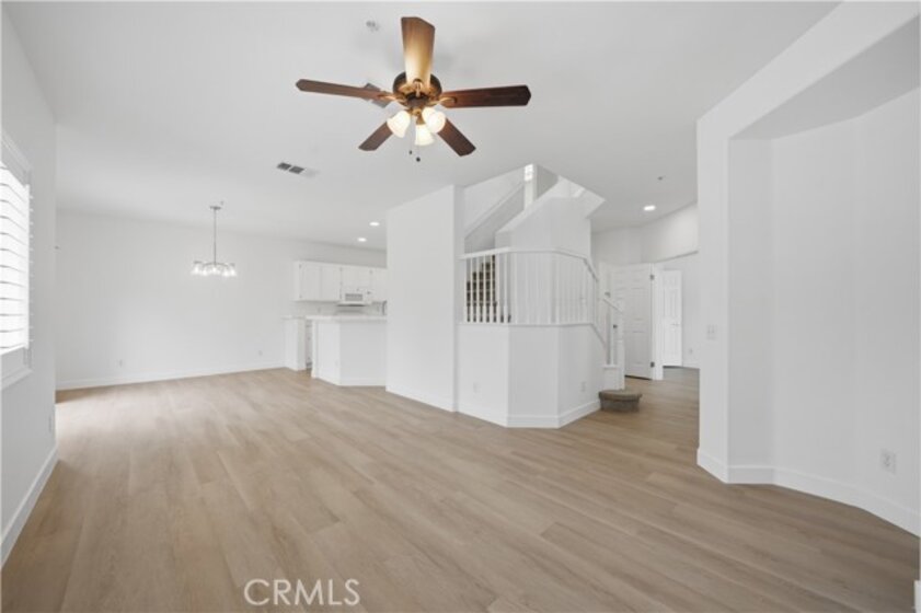 Welcome to Villas at Old Schoolhouse, a gated community in Murrieta. This thoughtfully renovated Townhome offers a bright, open layout with abundant natural light and a comfortable flow ideal for both everyday living and entertaining. The home has been refreshed throughout, featuring new luxury vinyl plank flooring on the main level and in the upstairs bathrooms, fresh interior paint, updated recessed LED lighting, plantation shutters, and new carpet on the stairs, hallway, and bedrooms. The kitchen offers a clean, functional layout with refinished cabinetry, tile countertops, updated faucet, and included refrigerator, opening to the dining area and family room with a cozy gas fireplace. A highly desirable downstairs bedroom and full bathroom provide flexibility for guests, multi generational living, or a home office setup. The downstairs laundry room and attached two car garage add to the home’s overall convenience. Upstairs, the spacious primary suite features a large walk in closet and an ensuite bathroom with dual sinks and a separate tub and shower area. Two additional bedrooms share a well appointed hall bathroom, and the upstairs landing includes extra linen storage along with a versatile alcove that can be used as a workspace, study area, or play space. Situated on a corner location, the home also offers a private enclosed backyard, perfect for relaxing or entertaining with minimal maintenance. The gated community features pools, a playground, and open green spaces, all centrally located near shopping, dining, top rated schools, and convenient freeway access. This home presents a strong opportunity for buyers looking for a well maintained property with low taxes in Murrieta. It is move in ready and positioned as an excellent value within the community.