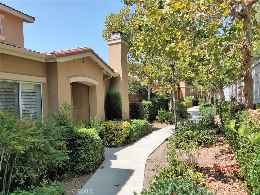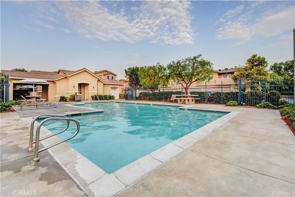 Hurry! Now available: turnkey residence in the gated community of Villas at Old Schoolhouse features a desirable floorplan with single level-like living having the master suite and second bedroom plus hall bath, laundry room, kitchen and living/dining room downstairs. The third bedroom, originally the loft, has its own private stairway that leads to a spacious retreat with a large walk-in closet and provides the perfect home office or teen room, a bright and comfortable solitary accommodation upstairs. This end unit features, fireplace and built-in curio niche in the living room, plantation shutters throughout, low maintenance tile with border design and new carpet flooring, kitchen with lots of cabinets and a breakfast bar, plus a large backyard with easy-care hardscape. The community amenities include pool and spa, lush manicured grounds, and ample parking spaces for guests. Centrally located! Just .5 miles to elementary school, .8 miles to middle school, 1.4 miles to high school, shopping, and restaurants. Easy 1.5 miles and a few minutes to I-15 and 215 Freeways!
