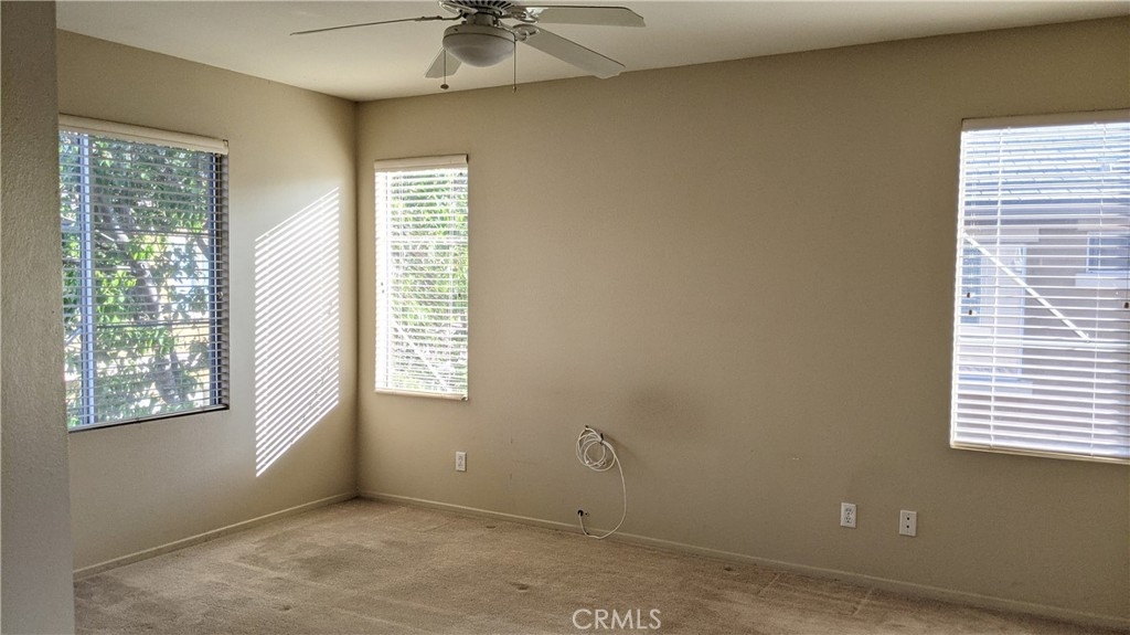 This is a very nice 3 bedroom, 2 bath upstairs unit with attached 2 car garage in the Villas at Old School House community. As you enter the home, there is access to the attached two car garage and you come up the stairs to an open living / dining / kitchen area with slider to the balcony. There is laminate flooring through the common areas of the home with carpet in the bedrooms. A fireplace provides nice ambiance to the living room. The master bedroom is good sized and has a walk-in closet. Indoor laundry room has hook ups for a full size washer and gas dryer and also has a sink! This is a great location close to shopping, schools and access to the 215 and 15 freeways. This community has a pool and is gated. Don't miss out on your opportunity to live in this fantastic condo!