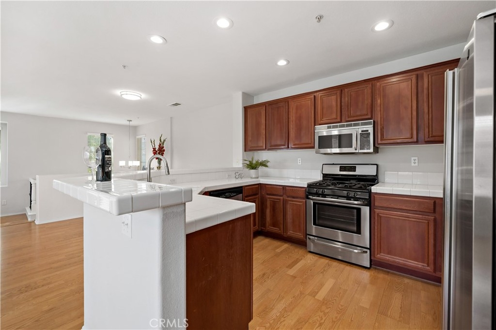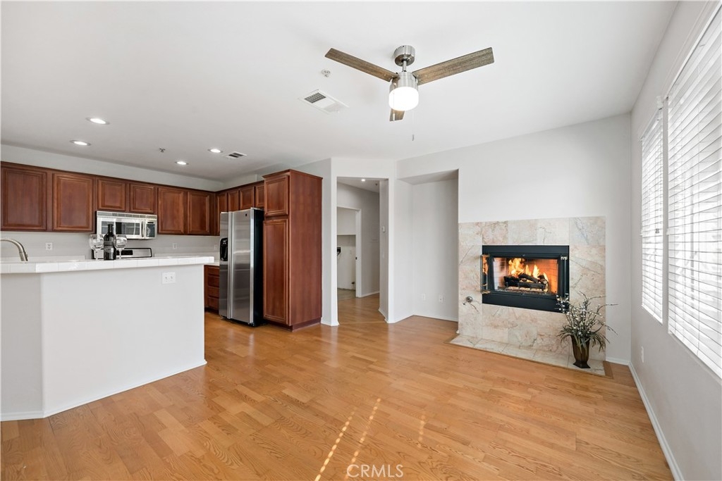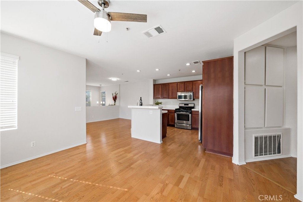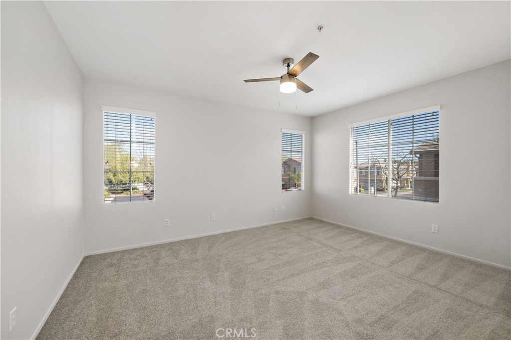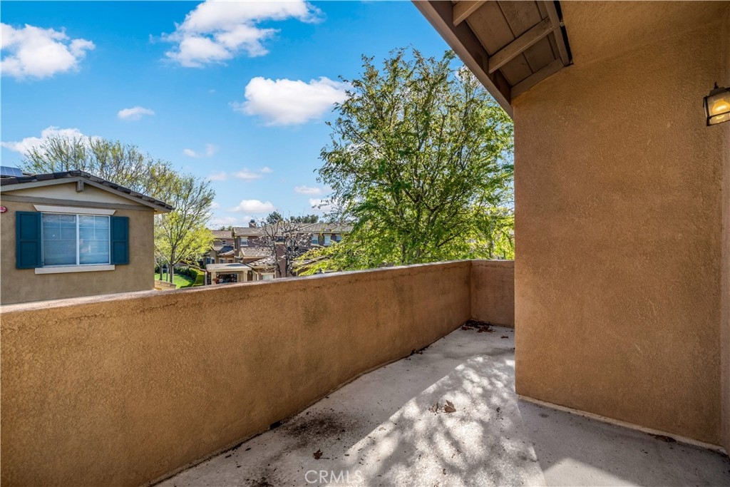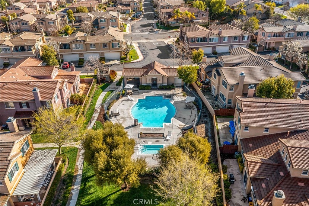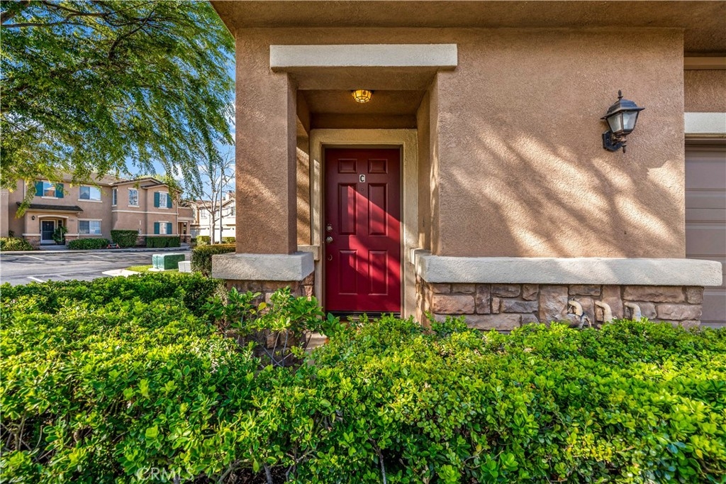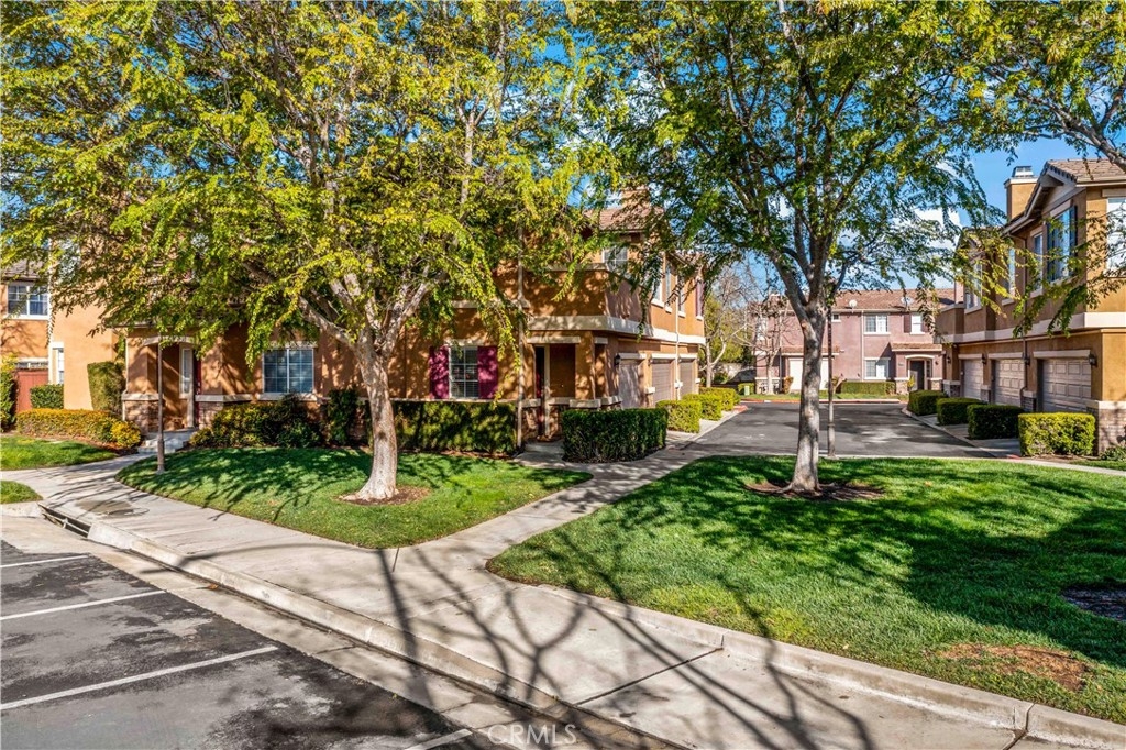 Welcome home to this beautifully upgraded end-unit condo located in the highly sought-after gated community, Villas at Old School House. Featuring 3 bedrooms, 2 bathrooms, and an attached 2-car garage with direct access, this single-story style floor plan offers comfort, convenience, and modern style. Freshly painted throughout with brand-new carpeting, stylish ceiling fans, modern lighting fixtures, and refrigerator- truly move-in ready. A private staircase leads you upstairs to a bright, open-concept living area designed with everyday functionality and entertaining in mind. The spacious kitchen features stainless steel appliances, ample cabinetry, and a peninsula bar seating area that flows seamlessly into the dining and family rooms. An adjacent laundry room with built-in cabinets provides additional convenience, while a cozy nook at the stair landing is ideal for a home office or homework area. Relax or entertain on your private, oversized deck overlooking lush landscaping and serene views of the meticulously maintained community grounds. Enjoy resort-style amenities including a sparkling pool and spa, mature trees, and a welcoming park-like atmosphere. Conveniently situated near top-rated schools, shopping centers, restaurants, and freeway access, this condo offers the ideal balance of tranquility and accessibility. This home is ready for its new owners to move right in. Hurry!
