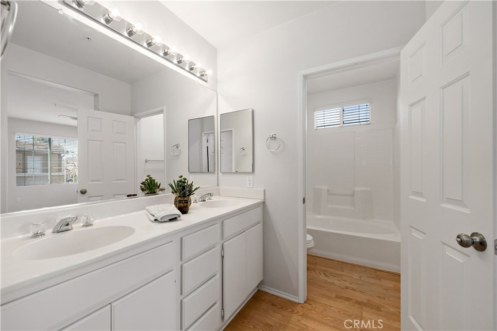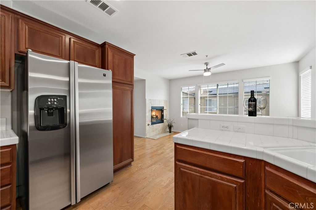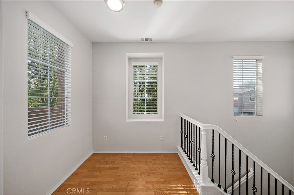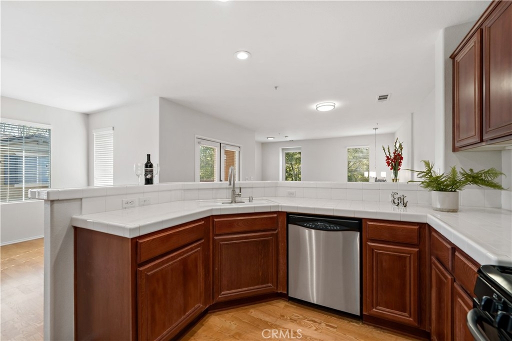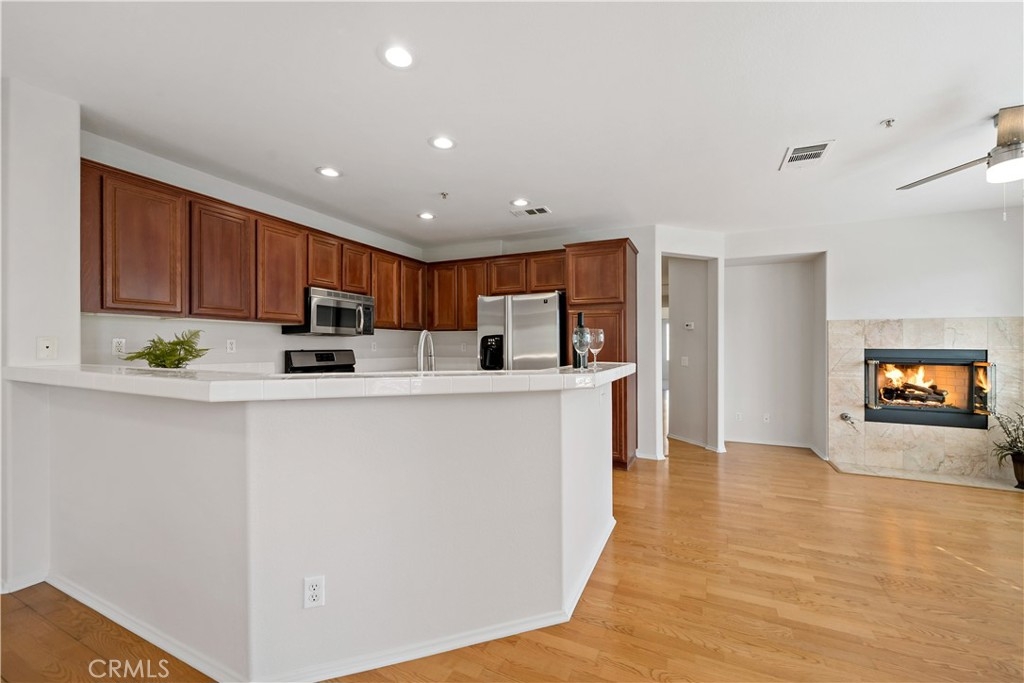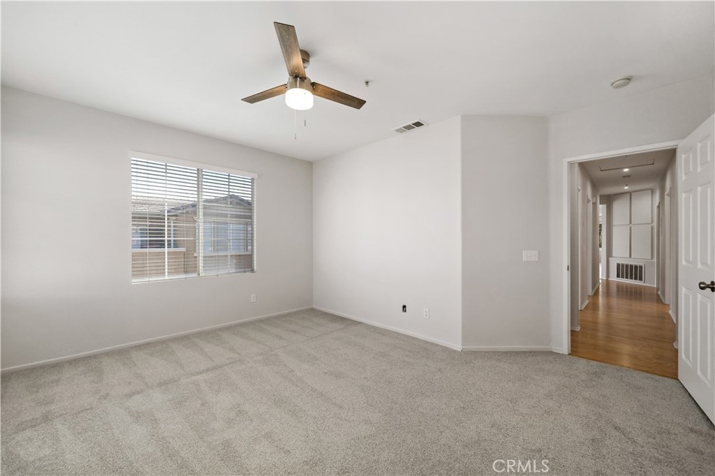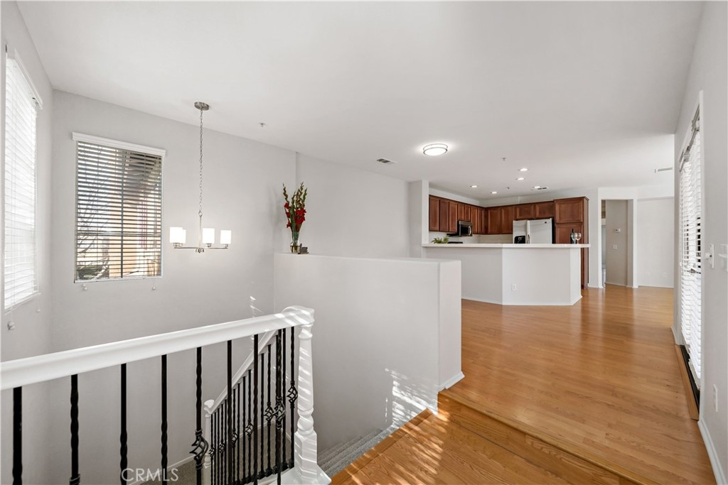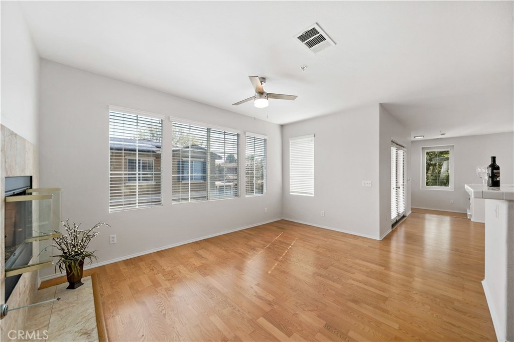 Welcome home to this beautifully upgraded end-unit condo located in the highly sought-after gated community, Villas at Old School House. Featuring 3 bedrooms, 2 bathrooms, and an attached 2-car garage with direct access, this single-story style floor plan offers comfort, convenience, and modern style. Freshly painted throughout with brand-new carpeting, stylish ceiling fans, modern lighting fixtures, and refrigerator- truly move-in ready. A private staircase leads you upstairs to a bright, open-concept living area designed with everyday functionality and entertaining in mind. The spacious kitchen features stainless steel appliances, ample cabinetry, and a peninsula bar seating area that flows seamlessly into the dining and family rooms. An adjacent laundry room with built-in cabinets provides additional convenience, while a cozy nook at the stair landing is ideal for a home office or homework area. Relax or entertain on your private, oversized deck overlooking lush landscaping and serene views of the meticulously maintained community grounds. Enjoy resort-style amenities including a sparkling pool and spa, mature trees, and a welcoming park-like atmosphere. Conveniently situated near top-rated schools, shopping centers, restaurants, and freeway access, this condo offers the ideal balance of tranquility and accessibility. This home is ready for its new owners to move right in. Hurry!