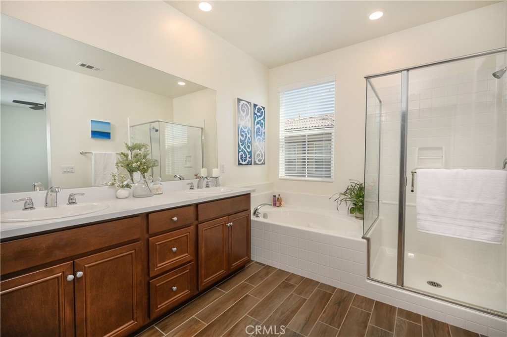 Back on the market! VA APPROVED. Fast move in OK! Welcome to Arroyo Vista. Nestled in a conveniently located neighborhood, this stunning end-unit home offers the perfect blend of tranquility and accessibility. Enjoy being just minutes from top-rated schools, shopping, dining, major freeways, and the renowned Temecula Wine Country. Built in 2016, this beautifully maintained 3-bedroom, 2.5-bathroom home showcases modern elegance and thoughtful upgrades throughout. Step inside to discover upgraded tile flooring, a light-filled open-concept living space, and large picture windows that bring the outdoors in. The open kitchen features granite countertops, rich cabinetry, and a generous island—perfect for entertaining. Upstairs, you'll find a bonus area/ loft, utility room and two spacious guest bedrooms, a primary suite complete with a newly renovated spa-inspired bathroom, soaking tub, and walk-in shower. Additional highlights include a 2-car garage with direct access, a tankless water heater, and close proximity to the community pool and spa. Residents of Arroyo Vista enjoy access to a private clubhouse, scenic walking trails, parks, and 24-hour security—all designed to elevate your everyday living.