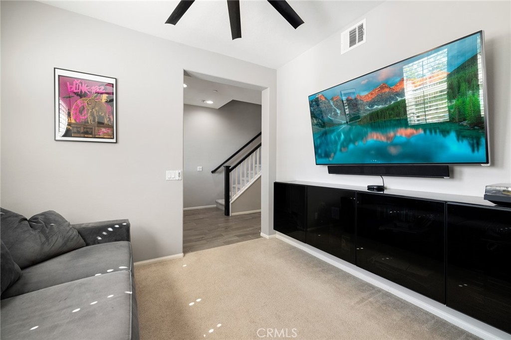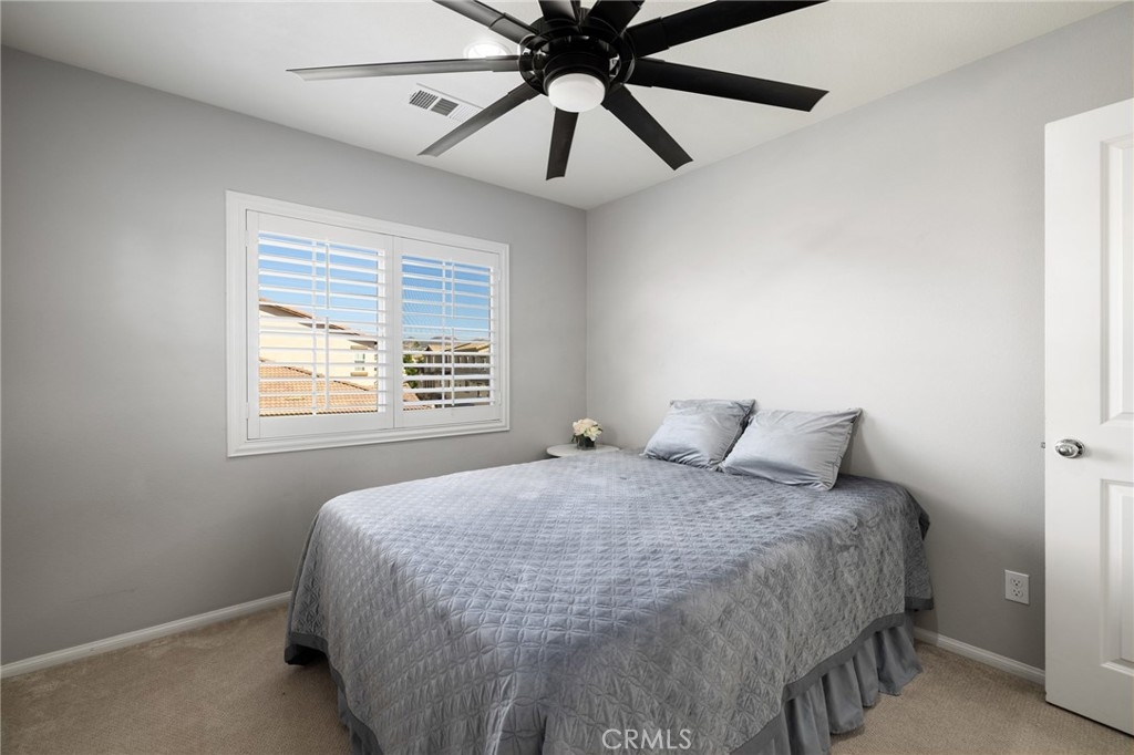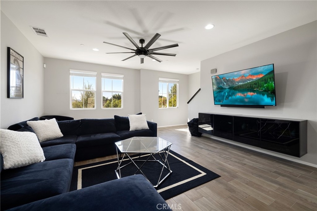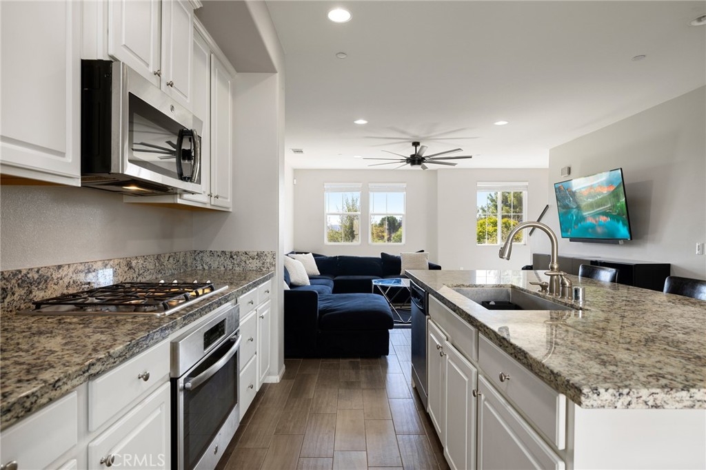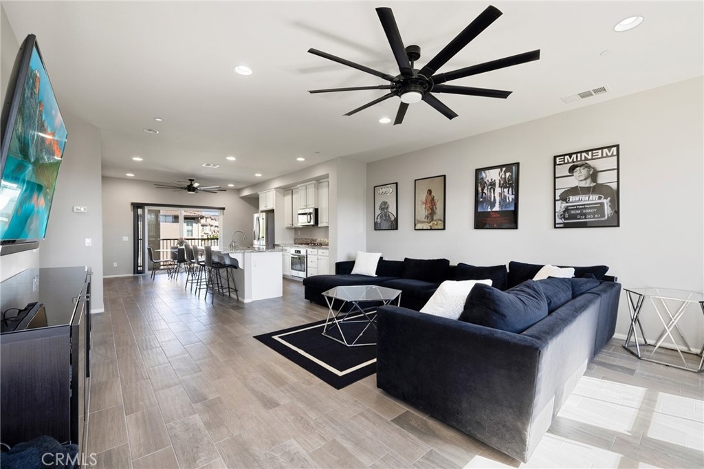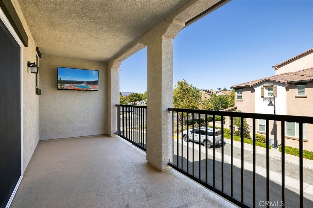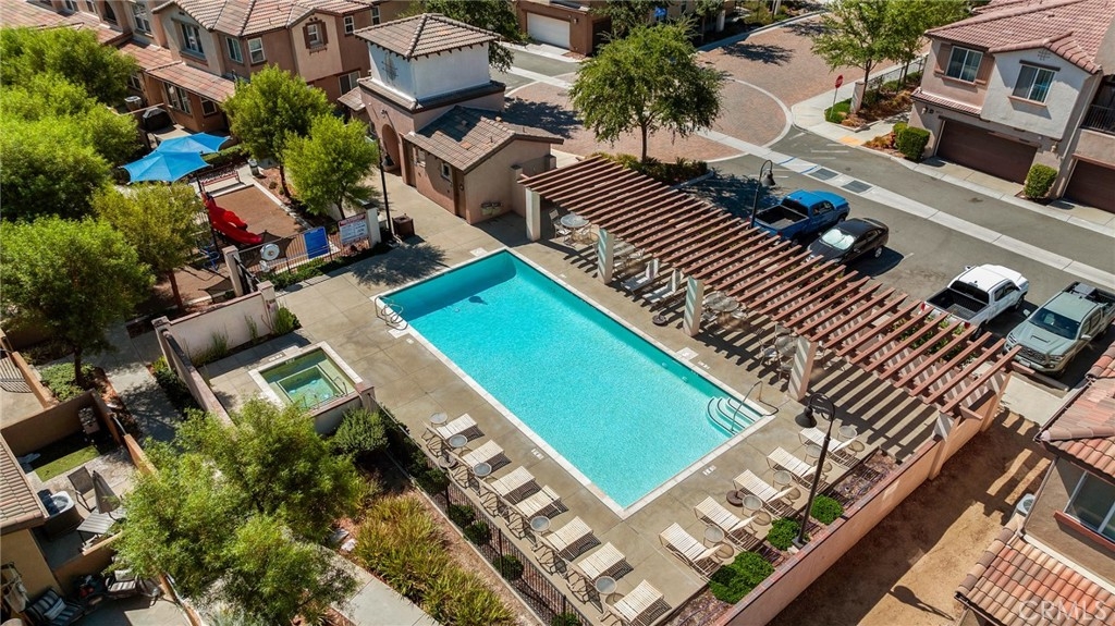 Looking for the perfect place to call home, well look no further! This amazing tri-level condo offers 3 bedrooms, 3 baths an office and stunning views! The Ridge at Cal Oaks condominium complex is highly sought after and located in the heart of Murrieta within walking distance to the Reading Cinemas Movie theatre, the infamous dog park and minutes to the historic downtown Murrieta main street. This gorgeous condo offers serenity in the midst of a bustling city with unobstructed views from the front porch all the way out to the San Diego County line. The 2000 sqft home greets you with a courtyard perfect for BBQing and entertaining which leads the way to the first floor. The main entrance is on the bottom floor and welcomes you to this gorgeous unit. Located on the main floor are tile floors, a large living area that can easily be a 4th bedroom featuring upgraded carpet, large black industrial ceiling fan and plantation shutters, a loft area that is currently being used as an office and can be converted into endless options! As well as the 3-car tandem garage access. The second floor, or the living area, greets you with tall ceilings, recessed lighting, custom paint, tile floors and an open concept floor plan. The large Great Room boasts the same large ceiling fan, floating shelves, large windows allowing tons of natural light and is open to the chefs kitchen. The kitchen is upgraded with granite counters, stainless steel appliances, an eat-up island and white cabinets. The large eating nook offers a large pantry and dry bar area just off the entrance to the private balcony with gorgeous community views and offering an outdoor TV. Also on this floor is a powder bath and tons of storage. The 3rd story, or the bedroom floor, offers upgraded carpet throughout, the laundry room featuring tons of storage and two spacious secondary bedrooms that share a secondary bath with a single vanity and shower tub combo. The private primary bedroom boasts gorgeous views offering a huge walk-in closet, the large ceiling fan, and a attached bath featuring tile floors, dual vanity, soaking tub and standing shower. The community offers a pool, spa, BBQ area, and tot lot. This location is centrally located in Murrieta and part of the Murrieta USD with easy access to the 15 Freeway, tons of shopping and entertainment, including the Temecula wineries which are 15 minutes away, 45 minutes to San Diego and just an hour to the closet beaches. This is a home you don't want to miss!
