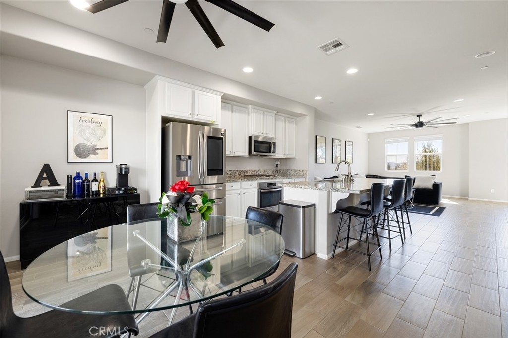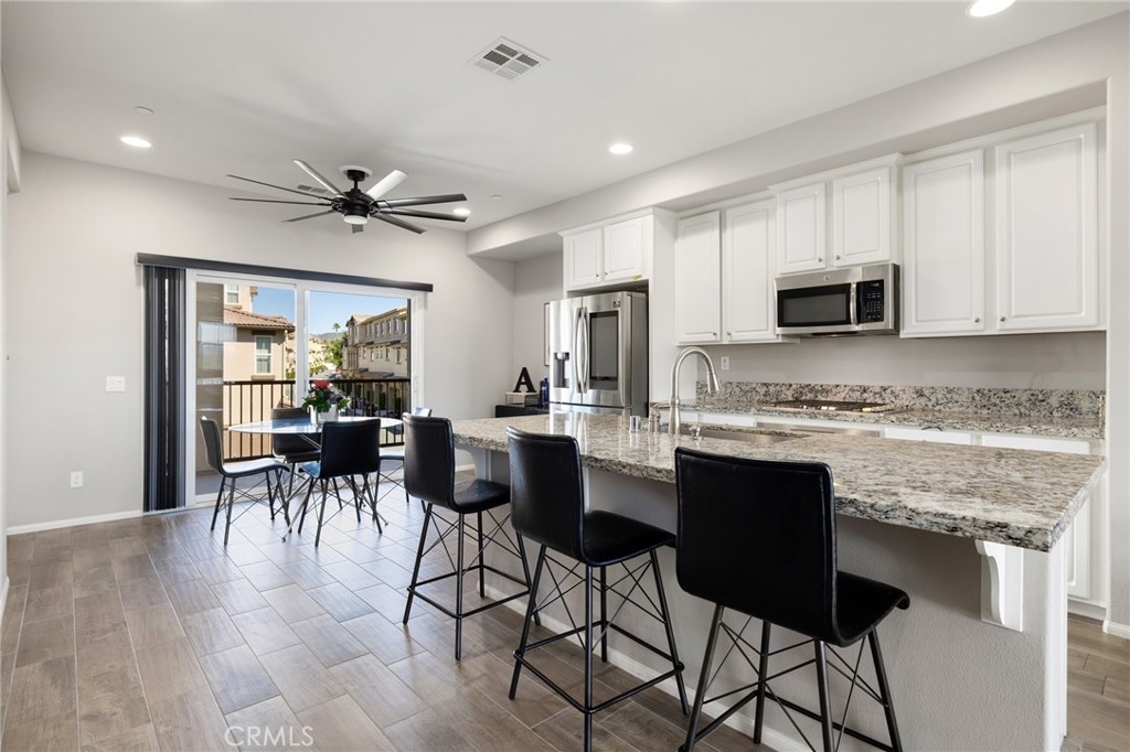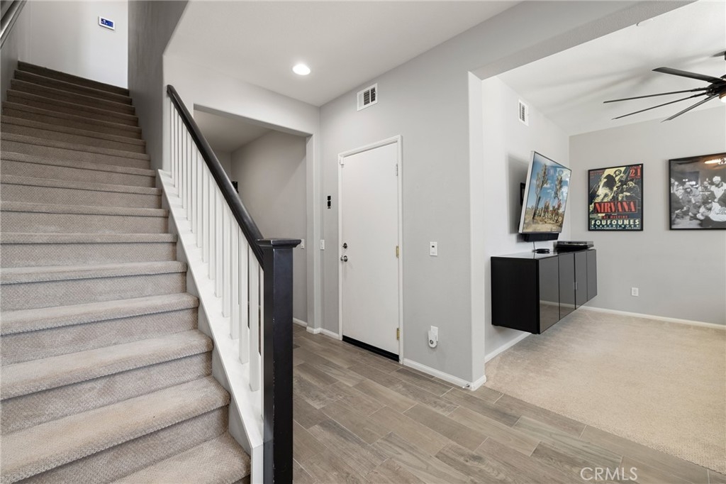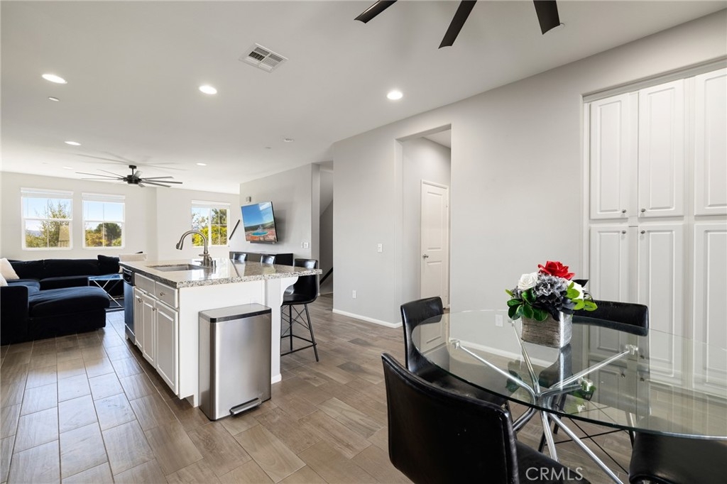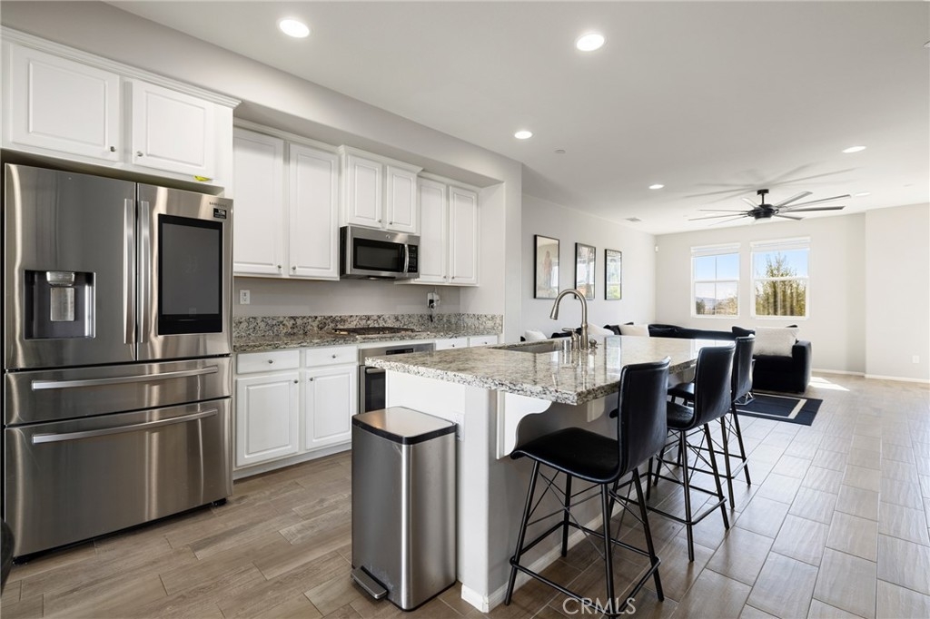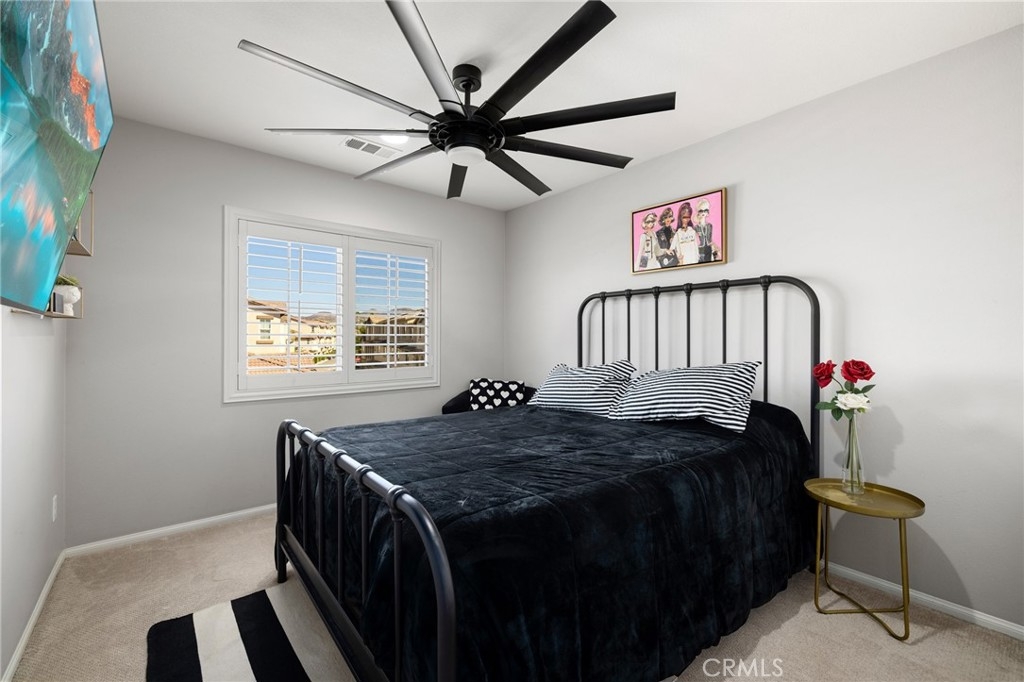 Looking for the perfect place to call home, well look no further! This amazing tri-level condo offers 3 bedrooms, 3 baths an office and stunning views! The Ridge at Cal Oaks condominium complex is highly sought after and located in the heart of Murrieta within walking distance to the Reading Cinemas Movie theatre, the infamous dog park and minutes to the historic downtown Murrieta main street. This gorgeous condo offers serenity in the midst of a bustling city with unobstructed views from the front porch all the way out to the San Diego County line. The 2000 sqft home greets you with a courtyard perfect for BBQing and entertaining which leads the way to the first floor. The main entrance is on the bottom floor and welcomes you to this gorgeous unit. Located on the main floor are tile floors, a large living area that can easily be a 4th bedroom featuring upgraded carpet, large black industrial ceiling fan and plantation shutters, a loft area that is currently being used as an office and can be converted into endless options! As well as the 3-car tandem garage access. The second floor, or the living area, greets you with tall ceilings, recessed lighting, custom paint, tile floors and an open concept floor plan. The large Great Room boasts the same large ceiling fan, floating shelves, large windows allowing tons of natural light and is open to the chefs kitchen. The kitchen is upgraded with granite counters, stainless steel appliances, an eat-up island and white cabinets. The large eating nook offers a large pantry and dry bar area just off the entrance to the private balcony with gorgeous community views and offering an outdoor TV. Also on this floor is a powder bath and tons of storage. The 3rd story, or the bedroom floor, offers upgraded carpet throughout, the laundry room featuring tons of storage and two spacious secondary bedrooms that share a secondary bath with a single vanity and shower tub combo. The private primary bedroom boasts gorgeous views offering a huge walk-in closet, the large ceiling fan, and a attached bath featuring tile floors, dual vanity, soaking tub and standing shower. The community offers a pool, spa, BBQ area, and tot lot. This location is centrally located in Murrieta and part of the Murrieta USD with easy access to the 15 Freeway, tons of shopping and entertainment, including the Temecula wineries which are 15 minutes away, 45 minutes to San Diego and just an hour to the closet beaches. This is a home you don't want to miss!