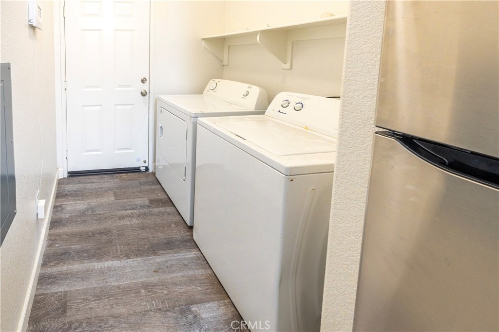 Beautifully upgraded 2-bedroom, 2-bath corner condo featuring a 1-car attached garage and a bright, open floor plan. This desirable end-unit offers added privacy and natural light throughout. The spacious kitchen is highlighted by granite countertops, ample cabinetry, and included appliances, making it move-in ready. Laminate flooring flows through the main living areas, complemented by a cozy fireplace that creates a warm and inviting atmosphere. The unit also includes an in-unit washer and dryer for added convenience. Centrally located in Murrieta, this home offers easy access to major freeways, shopping, dining, and everyday amenities. Residents enjoy resort-style community amenities including a pool, spa, and fully equipped fitness center. A perfect opportunity for comfortable, low-maintenance living in a prime location!