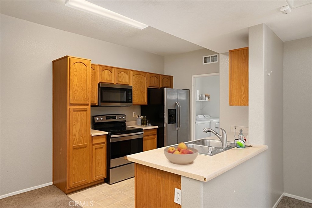 Priced to sell and move in ready! This condo is located in the highly desirable Reserves at Madison Park. HOA includes a gym, Pool, Spa, sauna, Barbecue, Playground, Clubhouse, indoor racquetball court, dog park, the list goes on! Home is easy to show and very clean with Stainless Steel appliances, including refrigerator and washer and dryer. It includes a 1 car garage plus a carport. The floorplan is very open with 2 bedrooms and 2 baths. Located within walking distance to shopping and restaurants and in the Murrieta Valley School District.