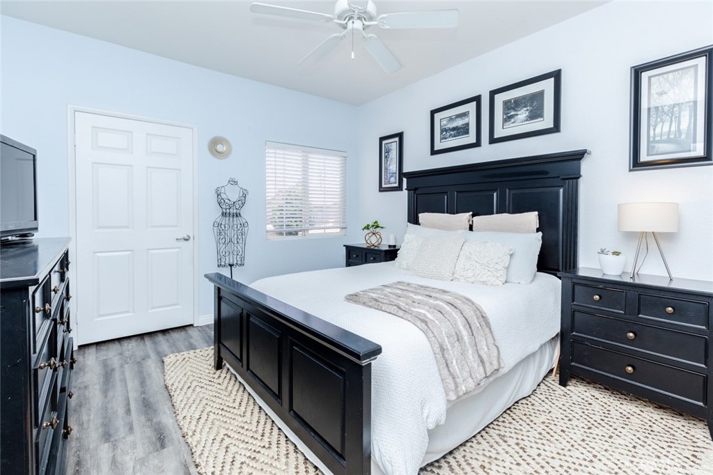 ***MUST SEE CINEMATIC VIDEO TOUR*** Single Level Corner Unit Condo In The Gated Community of The Reserves at Madison Park. The Spacious Two Bedroom, Two Bath Features 1,159 Square Feet Of Living Space, With Beautiful Wood Laminate Flooring Throughout. Conveniently Located Close To Shopping, Schools And Freeway Access. The Expansive Family Room With A Cozy Gas Fireplace, Is An Entertainers Delight With A Relaxing Patio. Inside Laundry, and Lots Of Storage Space! The Amenities Of The Complex Include Community Pool/Spa, Gym, Clubhouse, Racquetball Court And Playground. Rare Find With A Single Car Garage Plus An Additional Assigned Parking Space.