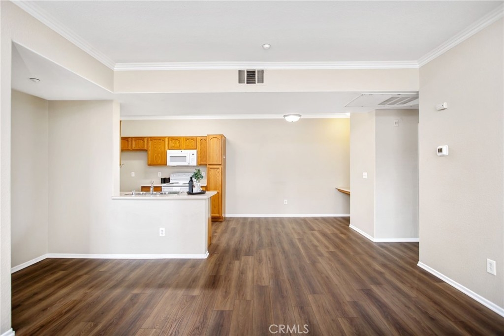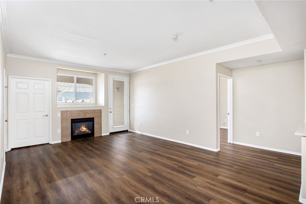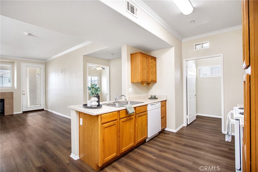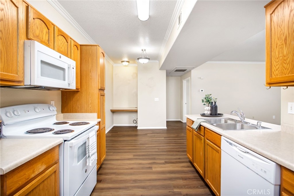 Discover effortless living in this meticulously maintained 2-bedroom, 2-bathroom condo, designed for modern comfort and style. The moment you step inside, you'll be greeted by an inviting, open-concept layout defined by stunning wood-style laminate flooring that extends throughout the main living spaces. The heart of the home is a bright and airy living room, centered around a charming fireplace with a tile surround. It creates the perfect focal point for quiet evenings or casual entertaining. The kitchen is both practical and polished, featuring a full suite of clean white appliances and abundant counter space, ready for your culinary adventures. A convenient breakfast bar provides a seamless transition from the kitchen to the dining area, enhancing the flow of the space. Retreat to the spacious primary suite, a true sanctuary complete with a generous walk-in closet and a private en-suite bathroom. The second bedroom is equally versatile and well-proportioned, ideal for a guest room, home office, or personal gym. Additional peace of mind comes with a brand-new air conditioning unit installed in January, ensuring year-round comfort and efficiency. Experience resort-style living with an array of exceptional community amenities. Enjoy a refreshing dip in the sparkling pool, relax in the soothing spa, or stay active at the on-site racquetball court and fully equipped gym. Added benefits include a 1-car detached garage for secure parking and extra storage, combining comfort with ultimate convenience. This home is not just a place to live; it is a lifestyle upgrade that perfectly blends tranquility with a vibrant community feel. Do not miss the opportunity to make it your own.