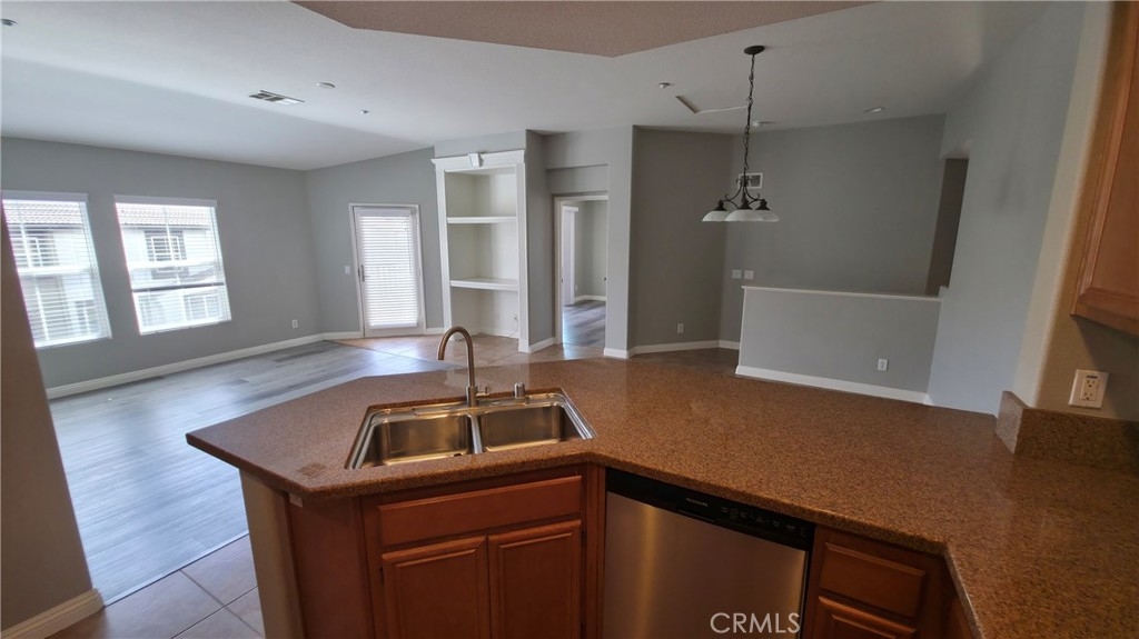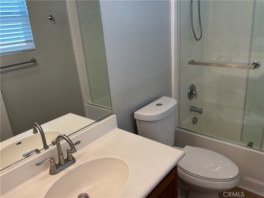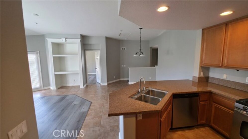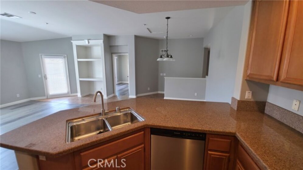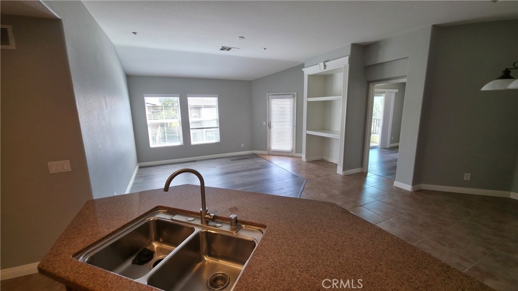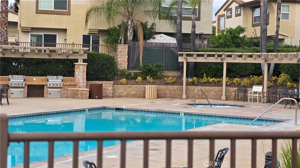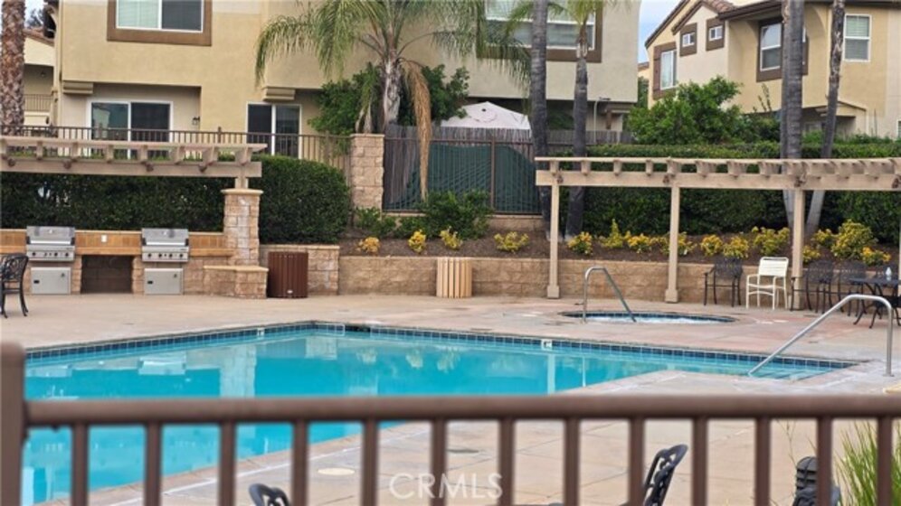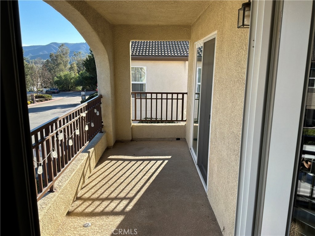 BEAUTIFUL MEADOWLANE COMMUNITY — Move-In Ready.FHA & VA Approved. Low Taxes and Low HOA located in the gated community of Meadowlane. Tastefully upgraded condo featuring modern vinyl and tile flooring throughout. This bright and inviting residence offers two spacious bedrooms,living/great room with abundant natural light. The primary suite includes a private balcony with excellent mountain views, a walk-in closet, and a large bathroom with dual sinks and a tub/shower combo with a sliding glass door enclosure. The secondry bedroom offers tons of natural light, ceiling fan, closet. Guest bathroom has upgraded sliding glass enclosure, single sink, tile flooring. The kitchen is beautifully appointed with granite countertops, ample counter space and cabinets. Additional highlights include a built-in entertainment center, ceiling fans, and an open, comfortable living space. The property also offers a one-car attached garage equipped with an automatic opener for added convenience. Community amenities include a pool, spa, and park-like common areas. Conveniently located within walking distance to Old Town Murrieta, the public library, shopping, dining, and award-winning schools.