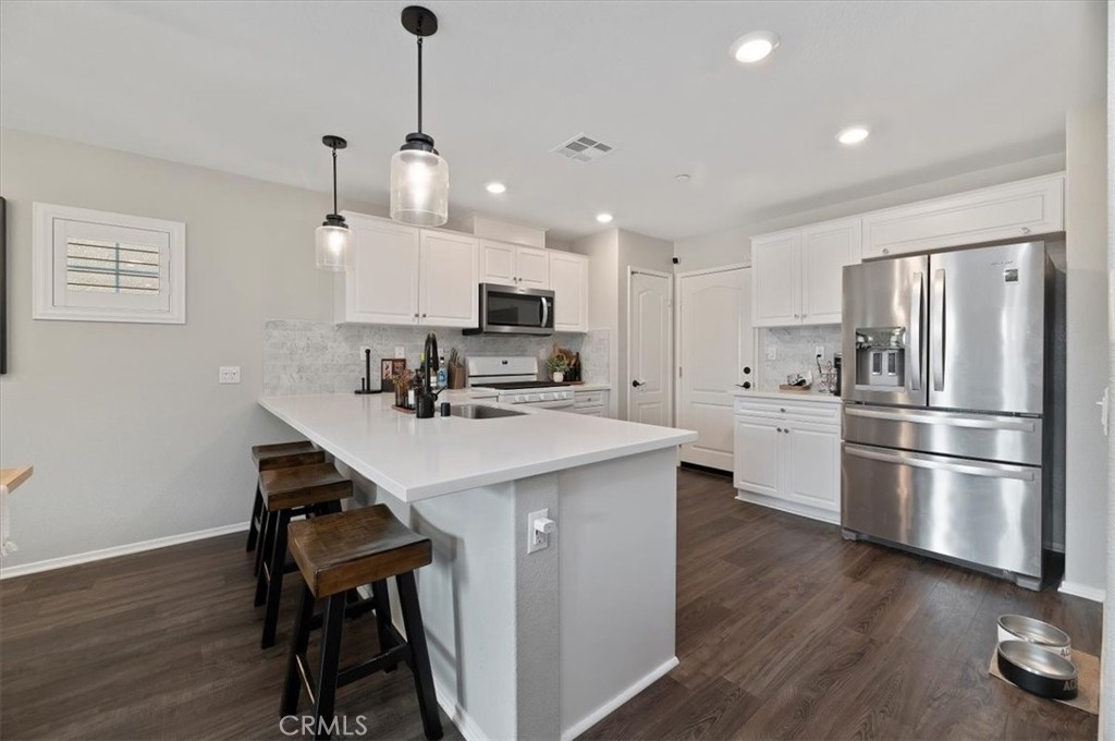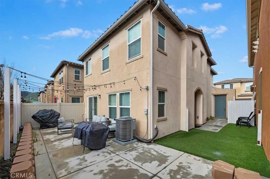 Welcome to this beautifully maintained 3-bedroom, 2.5-bath detached townhome in the highly desirable Westpark community of Murrieta. Built in 2020, this move-in-ready home offers 1,557 sq ft of thoughtfully designed living space with modern finishes throughout. OWNED SOLAR provides energy efficiency and added value from the start. Step inside to an open-concept floor plan filled with natural light, recessed lighting, and stylish wood-look flooring. The spacious great room flows seamlessly into the dining area and recently updated kitchen, creating the perfect space for entertaining. The newer kitchen features sleek quartz countertops, a custom backsplash, and stainless steel appliances, blending both function and style. Upstairs, you will find all three generously sized bedrooms, including a private primary suite with a walk-in closet, dual sinks, and a beautifully appointed en-suite bath. A convenient upstairs laundry room adds to the home’s smart layout. Enjoy outdoor living in the low-maintenance backyard patio, ideal for relaxing, grilling, or creating your own cozy retreat. The attached 2-car garage and energy-efficient features provide added value and convenience. Located in a well-kept community with a low HOA, residents enjoy access to a park, a playground, and picnic areas. Close to award-winning Murrieta schools, shopping, dining, and commuter access, this home offers the perfect balance of comfort and convenience. Modern, updated, and turnkey, this is one you will not want to miss.