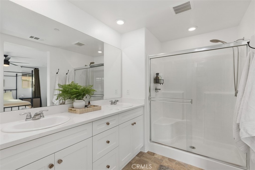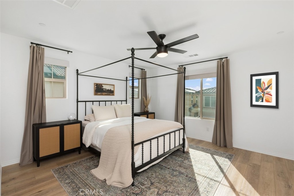 Welcome to Solera by Lennar. This highly upgraded 2 bedrooms, 3 bath 1377 square foot with an attached two car direct access garage is the beauty of the community. A unique option for this home is that it is an end unit with only one common wall, so you actually have a private front door entrance. Upgrade flooring throughout the home, stainless steel appliances, with a Bosch dishwasher. walk in pantry, kitchen island, blackout window shades, energy efficient feature solar panels, tankless water heater, upgraded cabinet area for the spices etc. The master suite is so large and clean you feel that you are in a retreat, with an oversized walk-in closet. Upstairs laundry room, and a second master retreat with a patio area overlooking the pool area and beautiful skyline views. Hurry, this home is in pristine condition and looking for its next owner... (.Whole house water filtration system, and Quiet Cool Fan.)