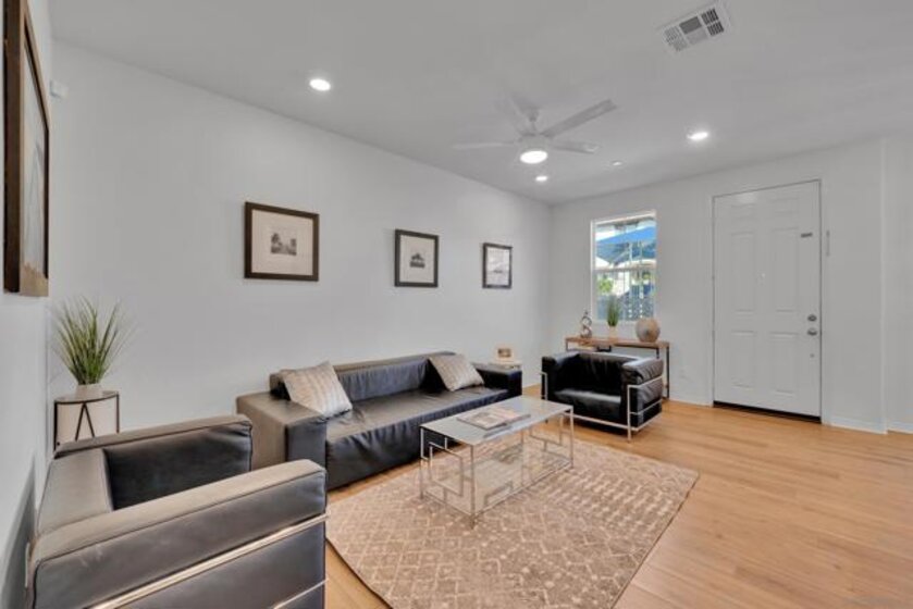 This beautifully constructed 3-bedroom, 2.5-bath Lennar home built in 2022 is located within the Solera community in the serene, rolling hills of Murrieta. This residence blends modern comfort, smart-home convenience, and an ideal location within the highly rated Murrieta Valley Unified School District, directly across from Murrieta Valley High School. Designed with Wi-Fi CERTIFIED™ whole-home connectivity, this home features integrated home automation including a Ring security system with motion sensors and video doorbell, MyQ smart garage door opener, Level Lock Bolt, tankless water heater, Flo by Moen leak detection system, and EV-charger ready attached 2 car garage with solar that keeps the bills affordable between $60-100 a mo. The open-concept main level showcases a modern kitchen with rich espresso colored cabinetry, stainless steel appliances, granite countertops, and an extended breakfast bar perfect for bar-stool seating. The kitchen flows seamlessly into the adjacent dining area and living room, all accented by beautiful wood-look laminate flooring. A convenient half bath for guests completes the downstairs. Upstairs, enjoy plush neutral carpeting throughout. The oversized primary suite features an ensuite bath with dual-sink vanity and an extra-large walk-in closet. Two additional bedrooms, a full bathroom and a dedicated laundry room on the upper level. Out front, a private fenced patio opens directly to a charming children’s play area with a gazebo and picnic tables. Community amenities include a resort-style pool and spa, community BBQ areas, and rec room. This beautifully constructed 3-bedroom, 2.5-bath Lennar home built in 2022 is located within the Solera community in the serene, rolling hills of Murrieta. This residence blends modern comfort, smart-home convenience, and an ideal location within the highly rated Murrieta Valley Unified School District, directly across from Murrieta Valley High School. Designed with Wi-Fi CERTIFIED™ whole-home connectivity, this home features integrated home automation including a Ring security system with motion sensors and video doorbell, MyQ smart garage door opener, Level Lock Bolt, tankless water heater, Flo by Moen leak detection system, and EV-charger ready attached 2 car garage with solar that keeps the bills affordable between $60-100 a mo. The open-concept main level showcases a modern kitchen with rich espresso colored cabinetry, stainless steel appliances, granite countertops, and an extended breakfast bar perfect for bar-stool seating. The kitchen flows seamlessly into the adjacent dining area and living room, all accented by beautiful wood-look laminate flooring. A convenient half bath for guests completes the downstairs. Upstairs, enjoy plush neutral carpeting throughout. The oversized primary suite features an ensuite bath with dual-sink vanity and an extra-large walk-in closet. Two additional bedrooms, a full bathroom and a dedicated laundry room on the upper level. Out front, a private fenced patio opens directly to a charming children’s play area with a gazebo and picnic tables. Community amenities include a resort-style pool and spa, community BBQ areas, and rentable party room with kitchen facilities. Located in one of Murrieta’s most convenient locations, with easy access to 15 and 215 freeways, enjoy a walkable lifestyle just down the street from the quaint, historic Downtown Murrieta Plaza, featuring popular restaurants, cozy coffee shops, a twice-weekly Farmers Market, and the famous annual Murrieta Rod Run.